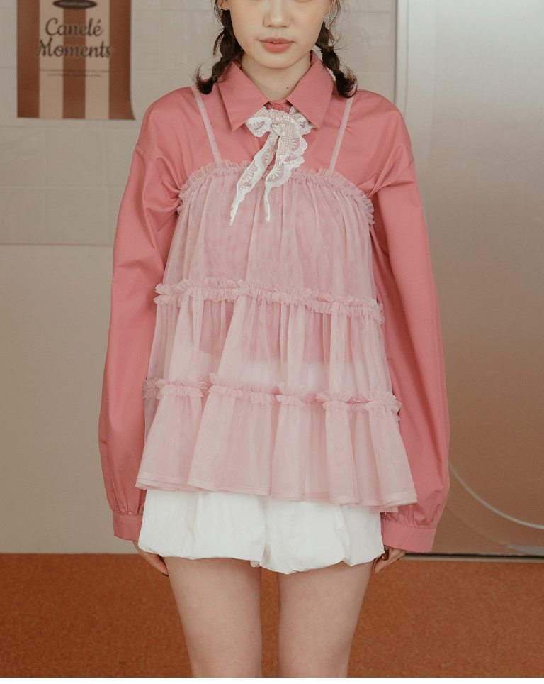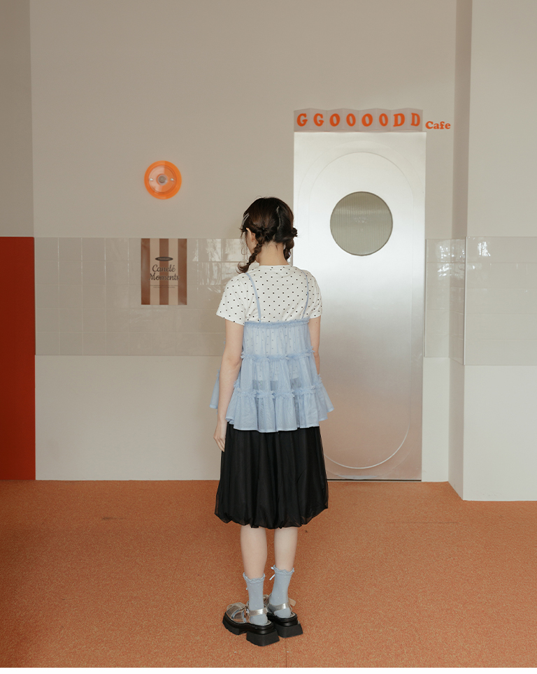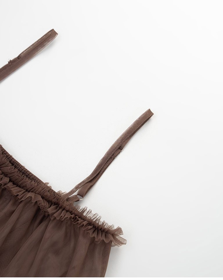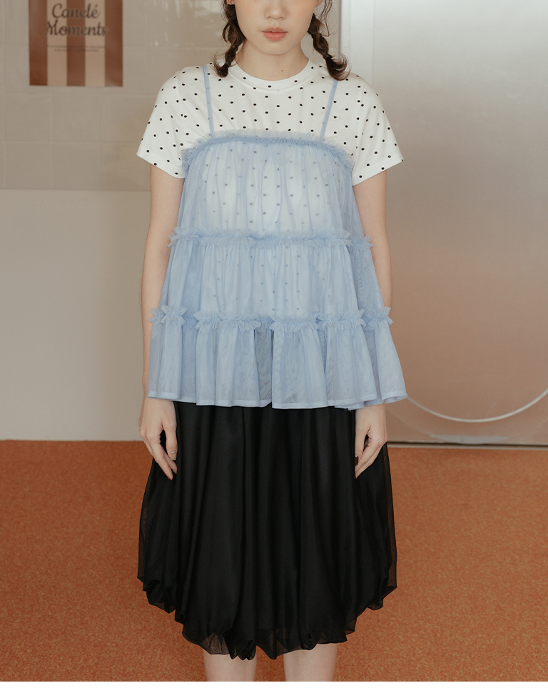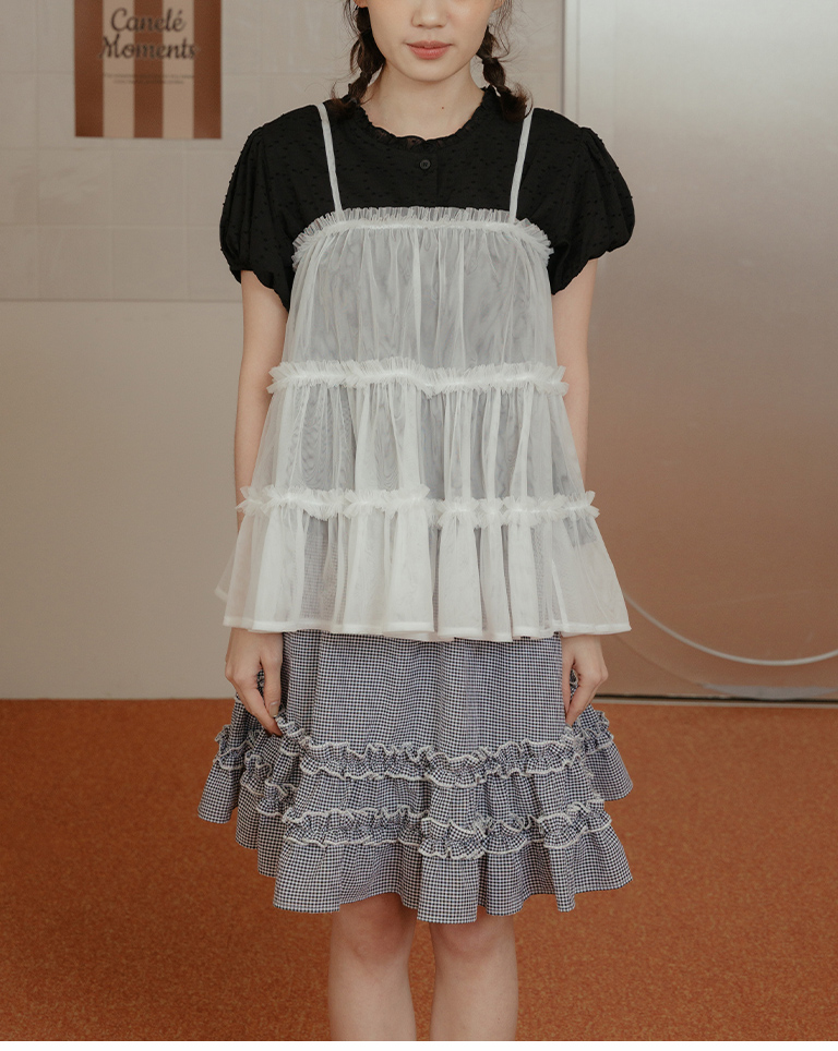 兩穿網紗荷葉蛋糕細肩罩衫背心