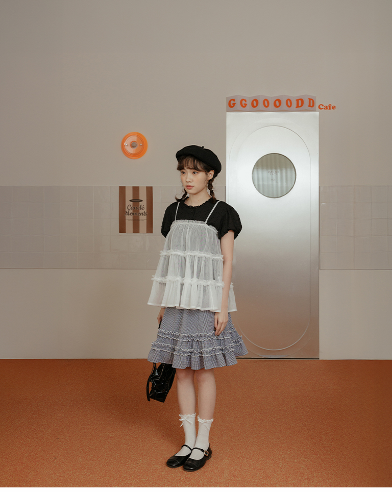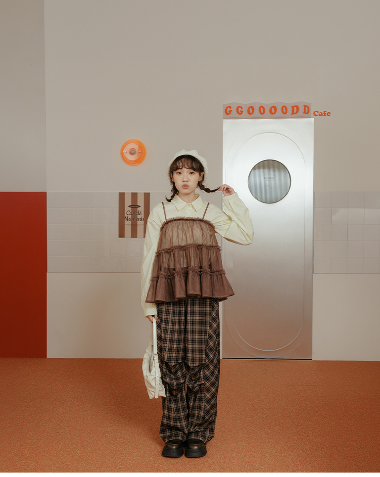 搭配本期格紋網紗上衣 打造日系感可麗露風格穿搭