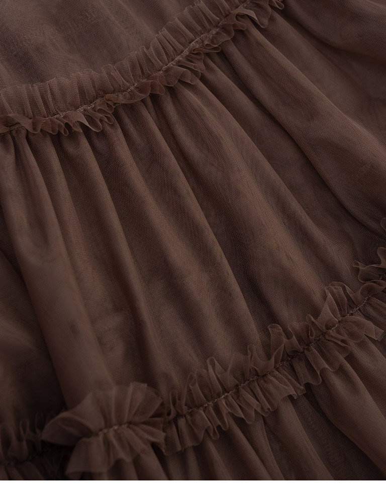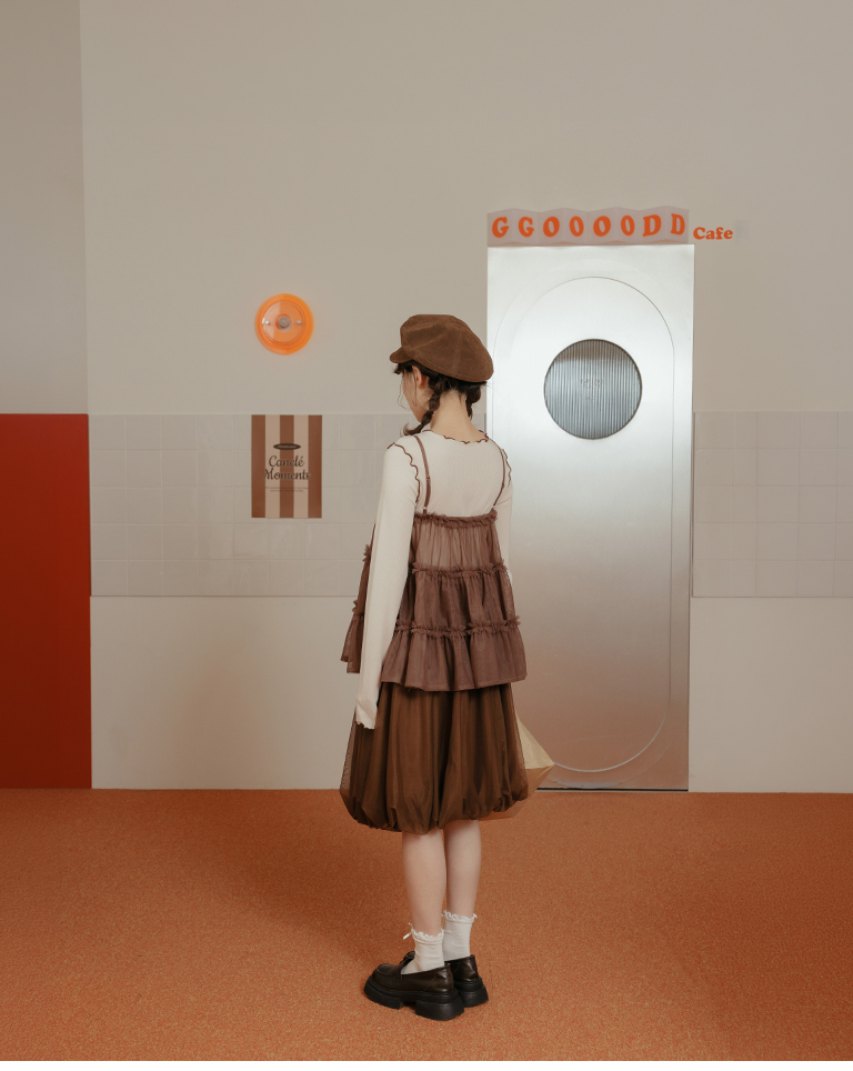 多層荷葉網紗 視覺呈現可麗露形狀剪裁