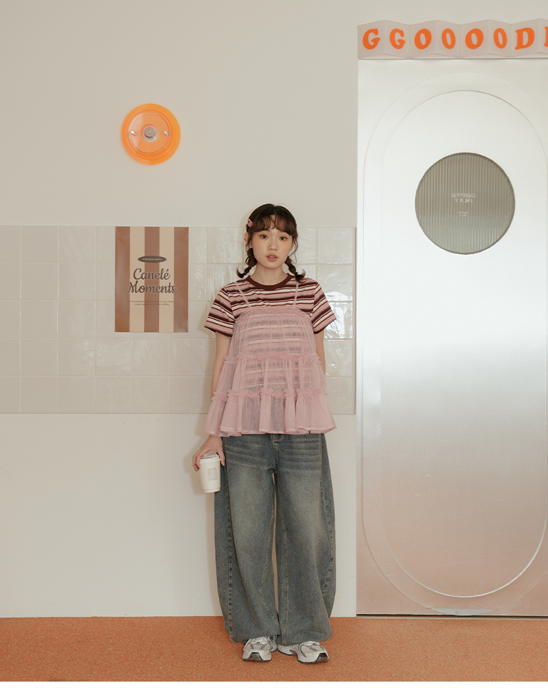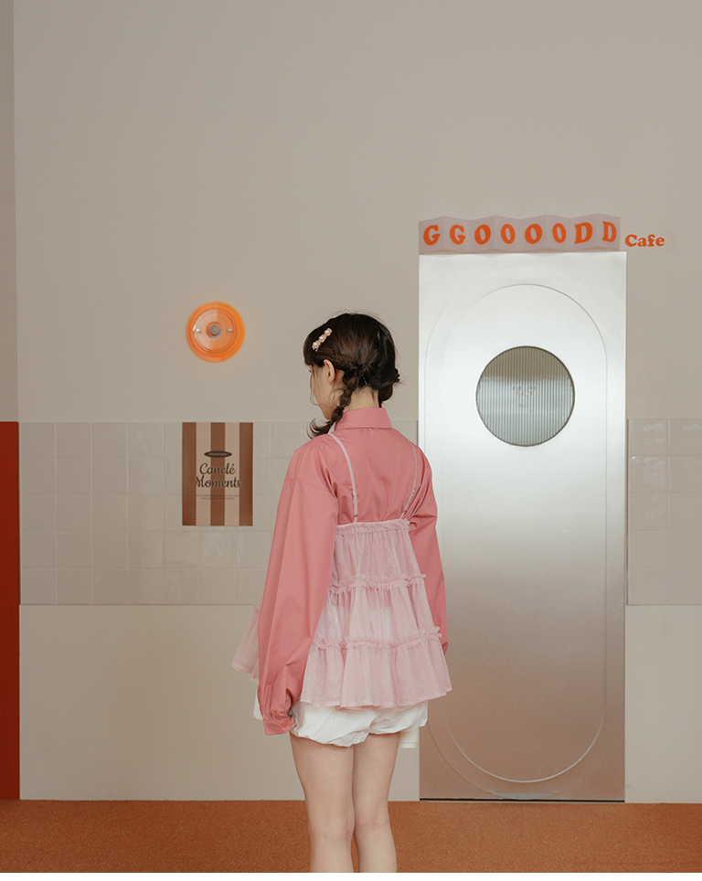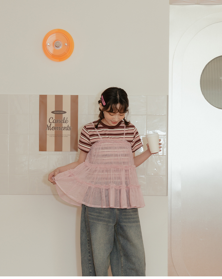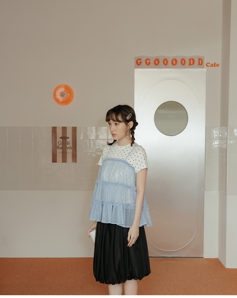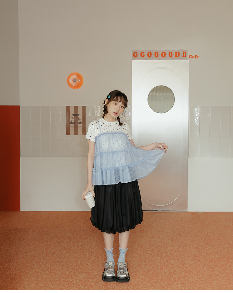 兩穿網紗荷葉蛋糕細肩罩衫背心 四色售