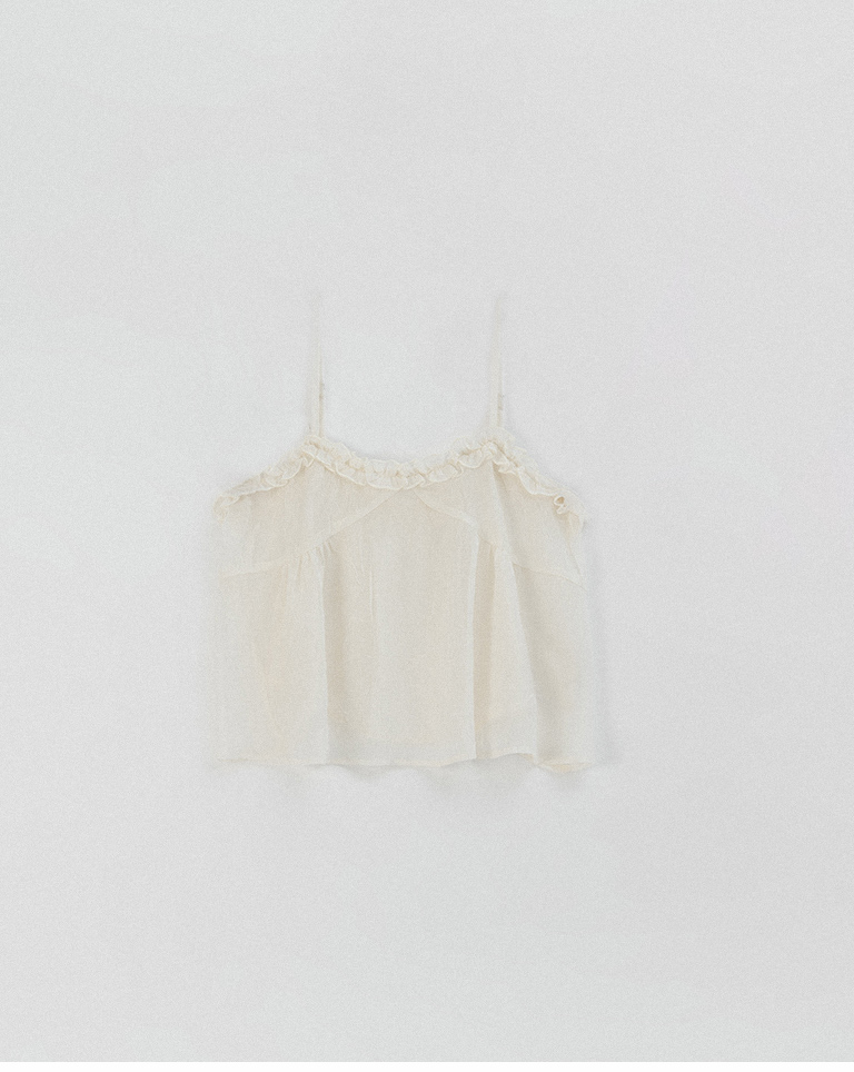荷葉V領皺皺網紗設計細肩背心-白