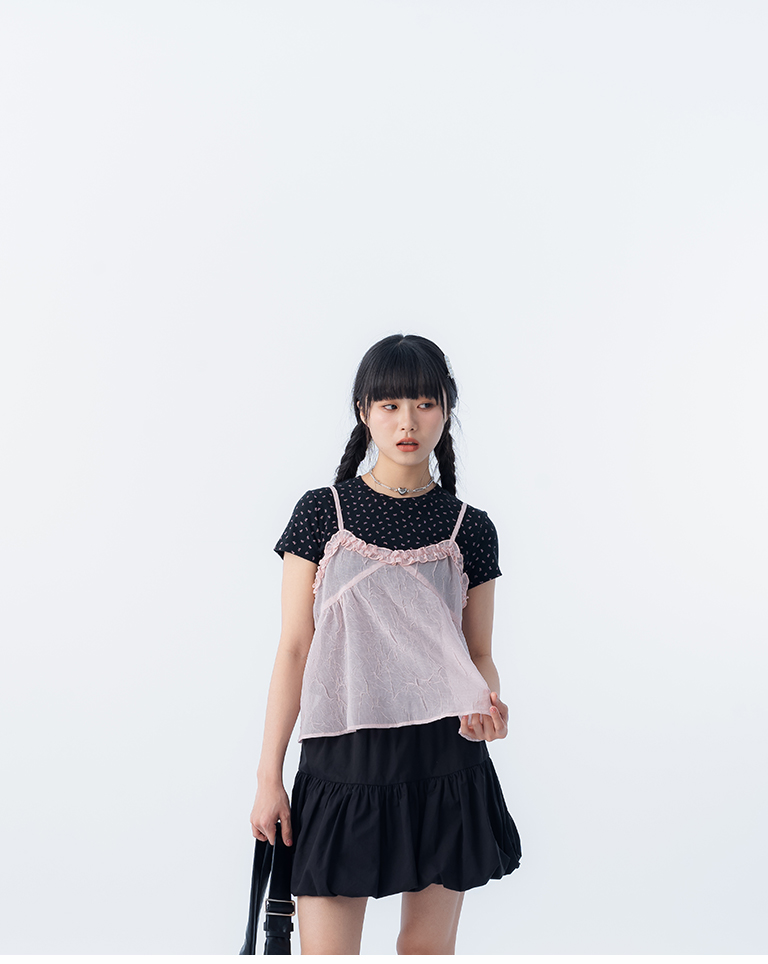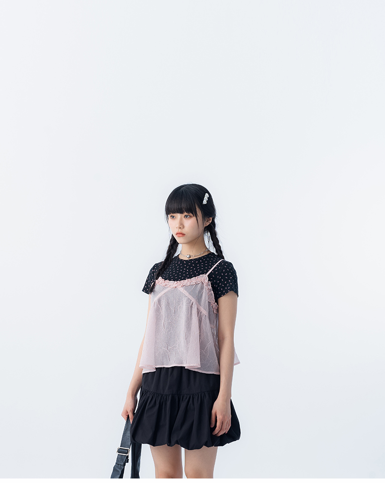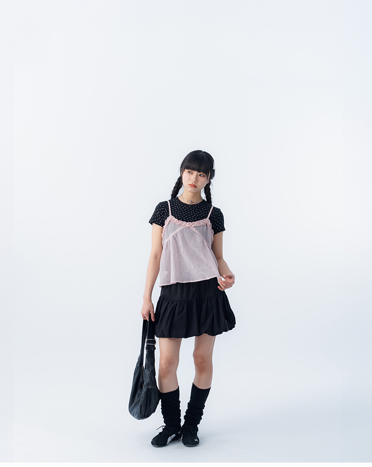 短版傘擺設計 疊穿素面單品可愛有型