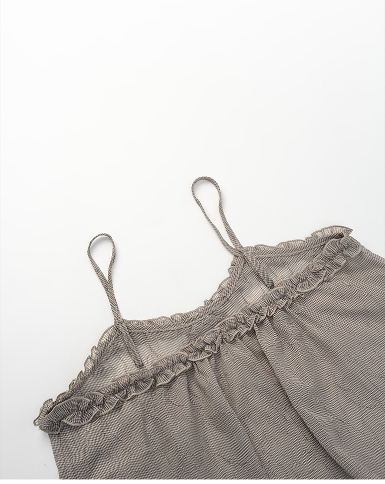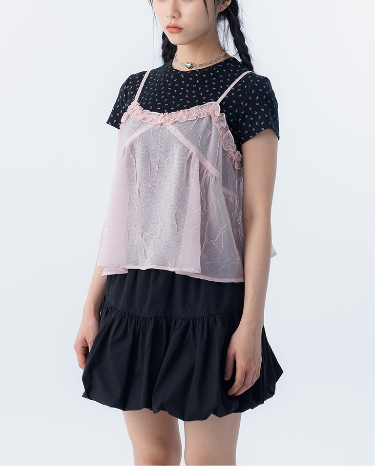荷葉V領皺皺網紗設計細肩背心