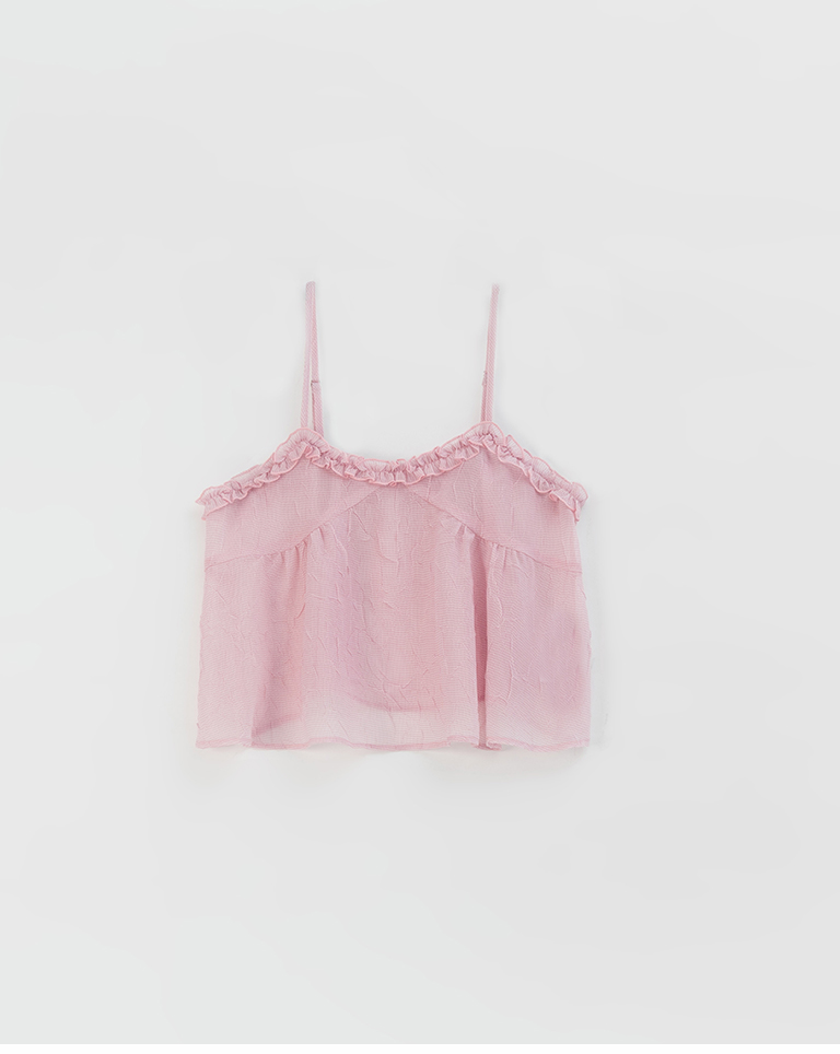 荷葉V領皺皺網紗設計細肩背心-粉