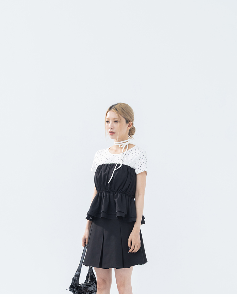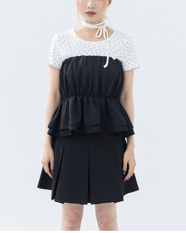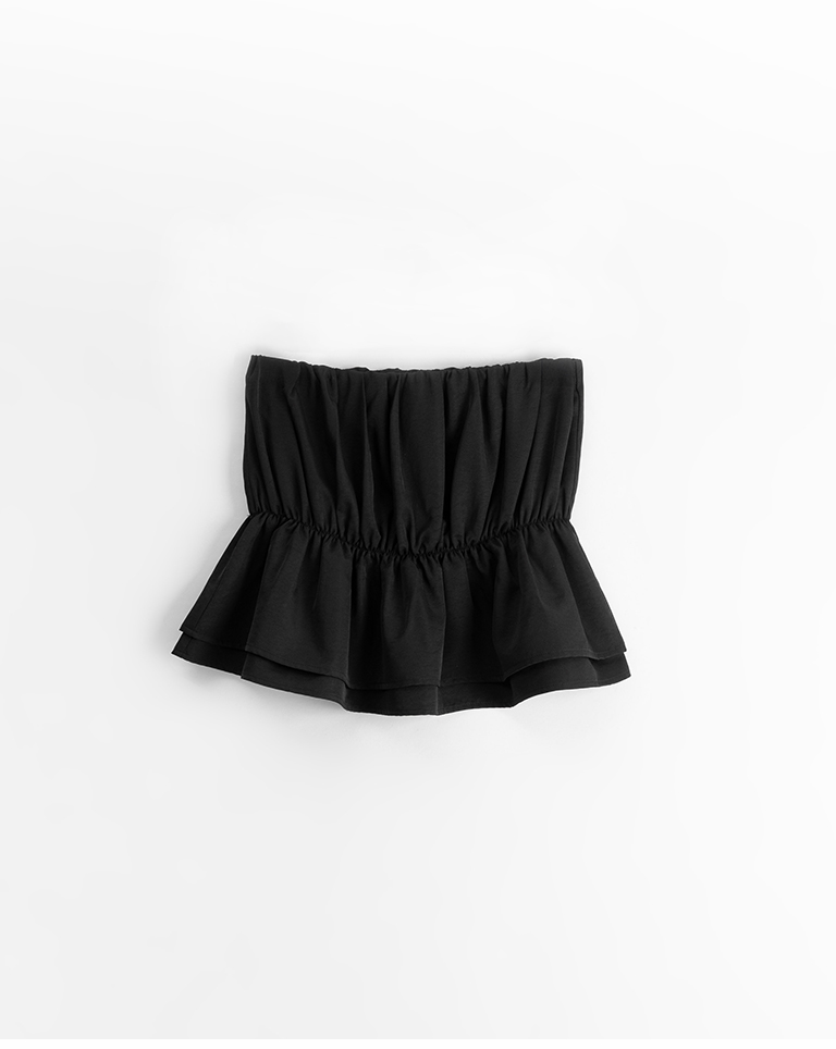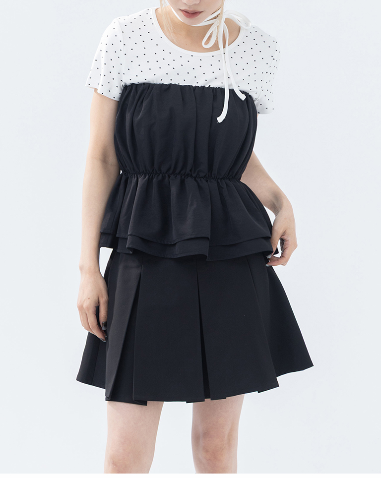 抓皺傘襬設計平口上衣 兩色售