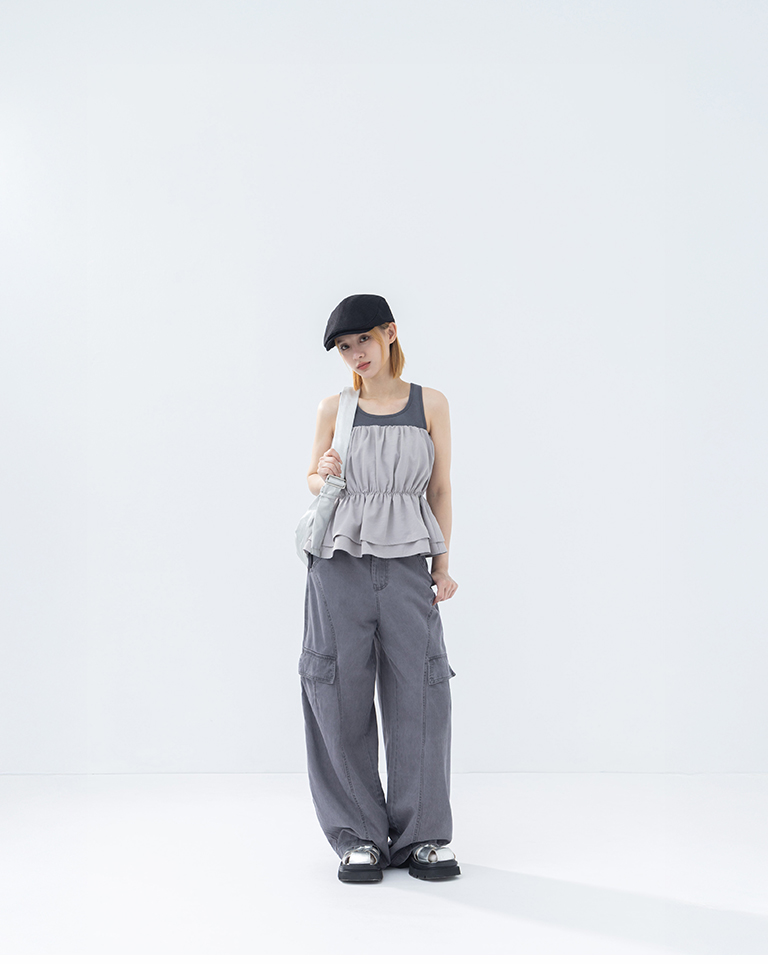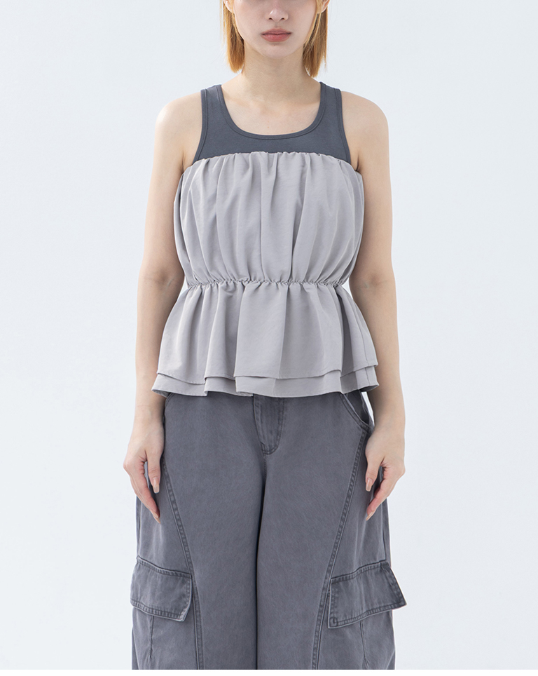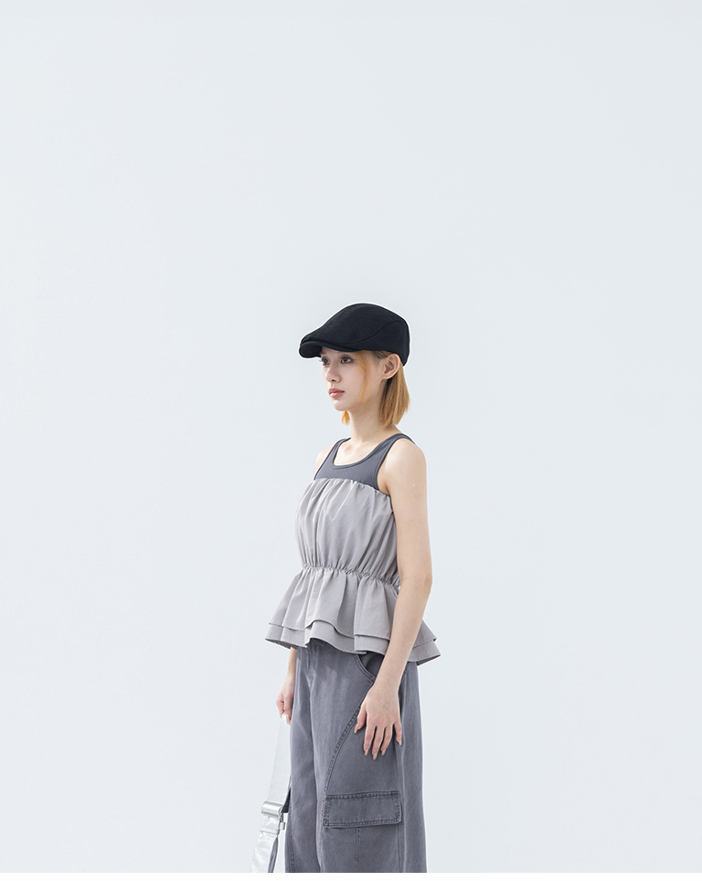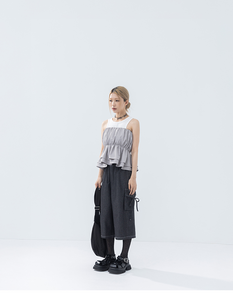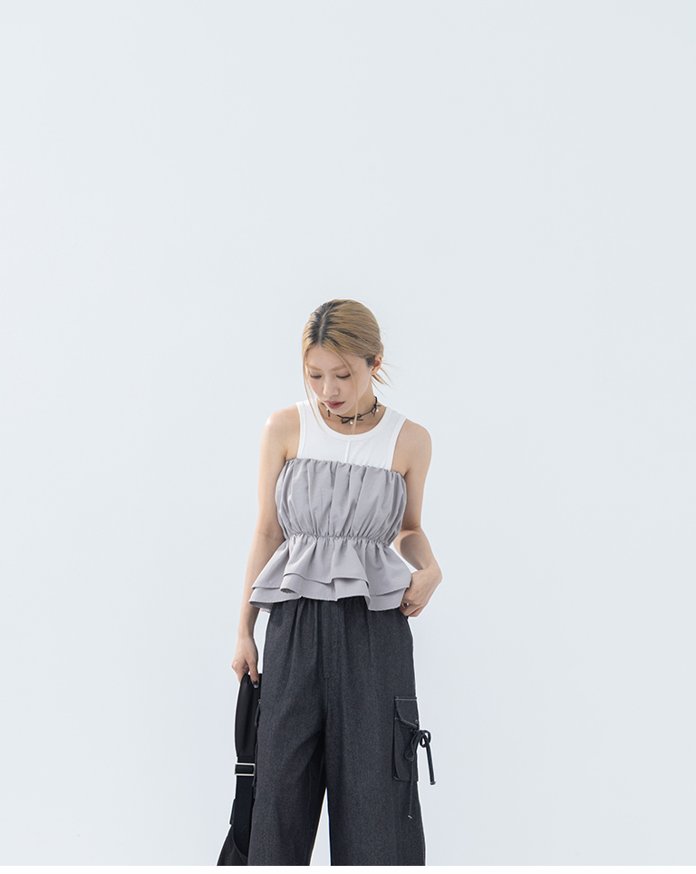 抓皺傘襬設計平口上衣