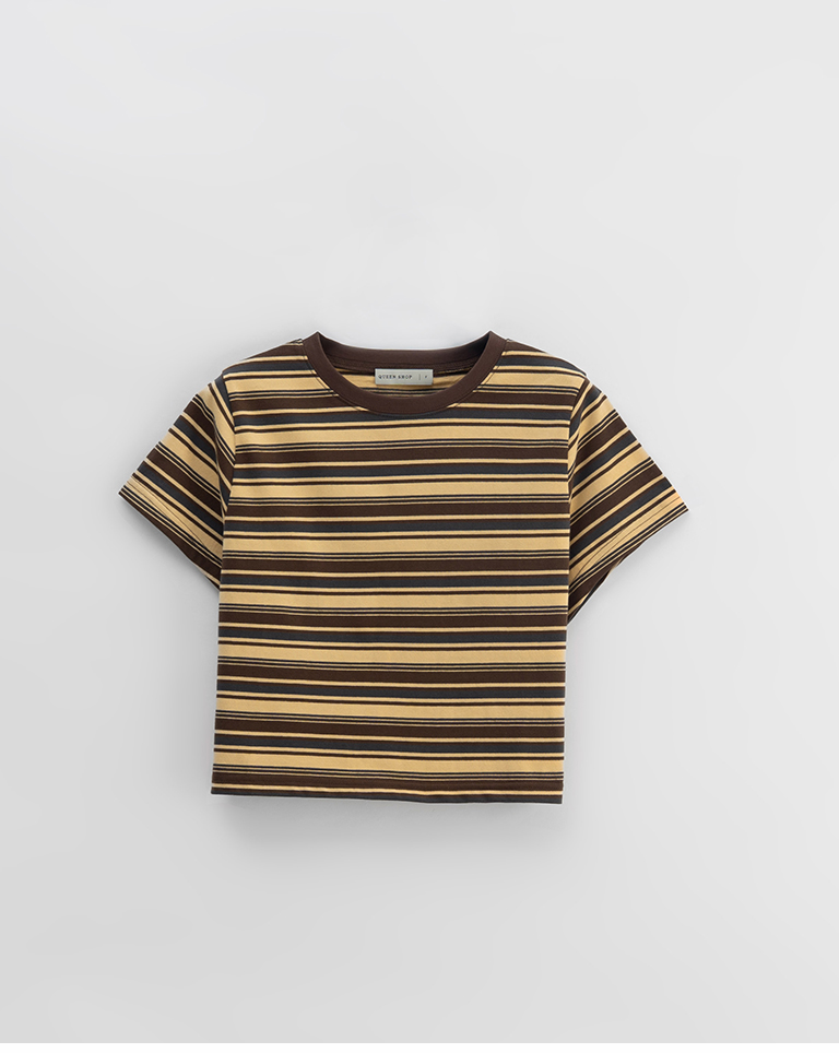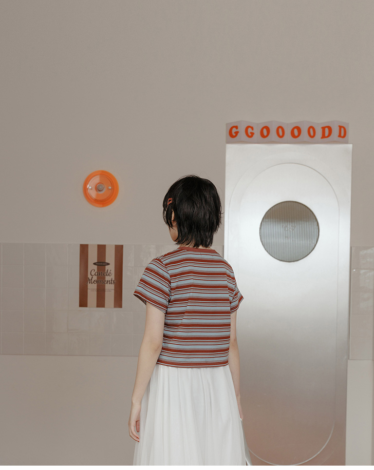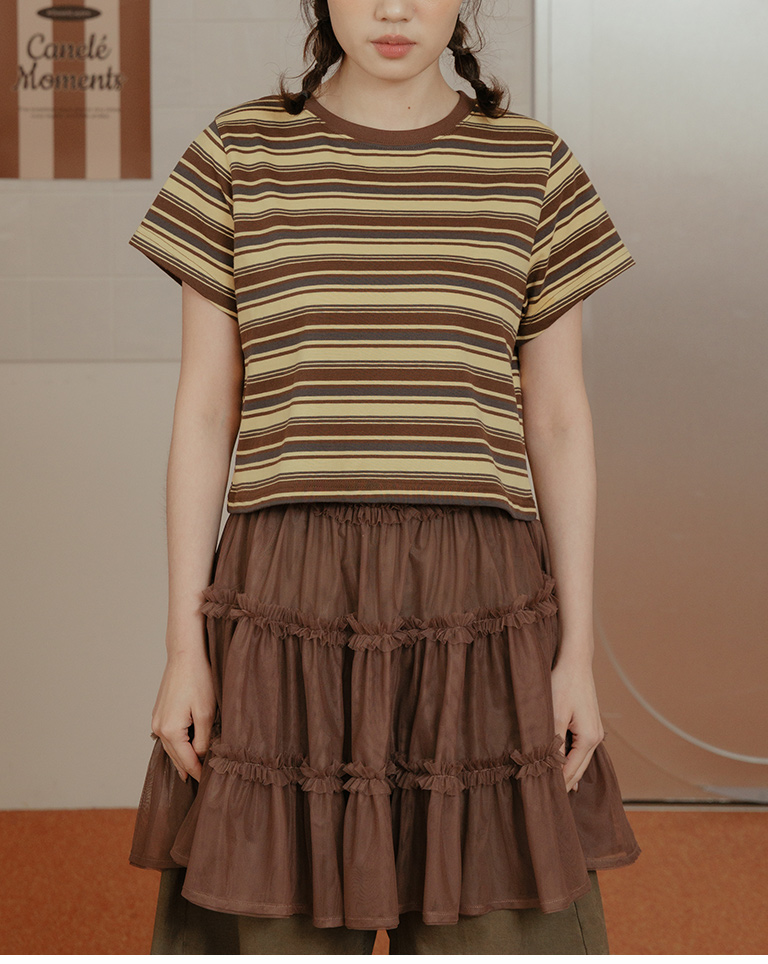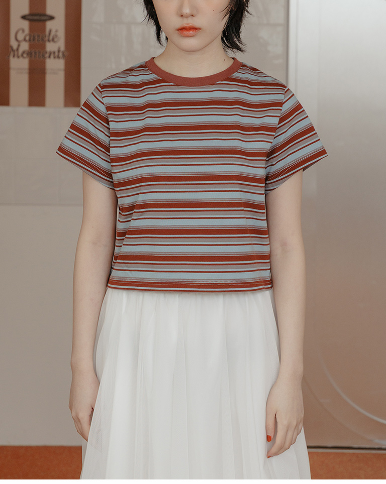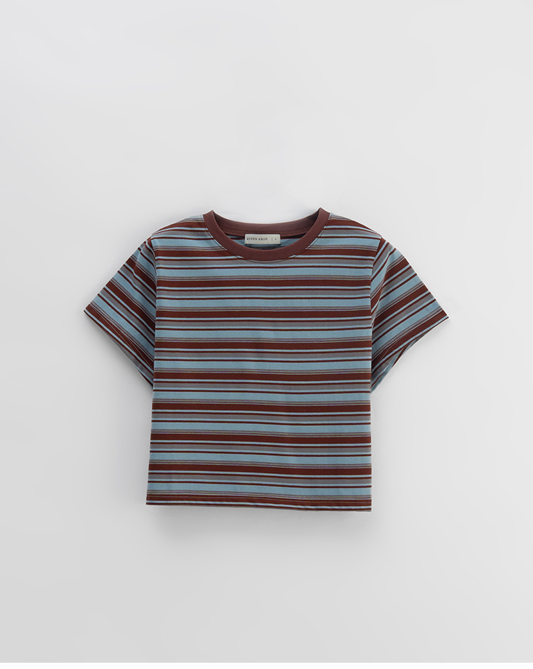 配色條紋短版短袖上衣