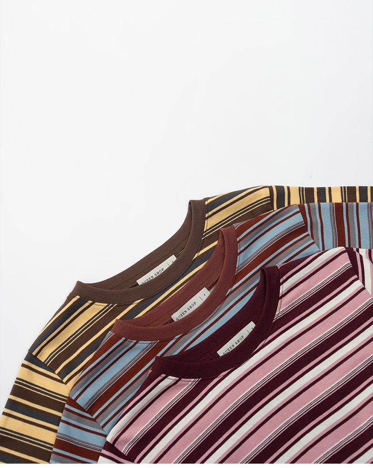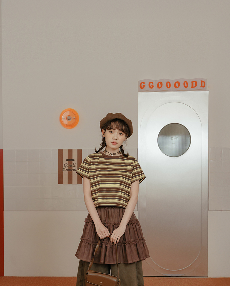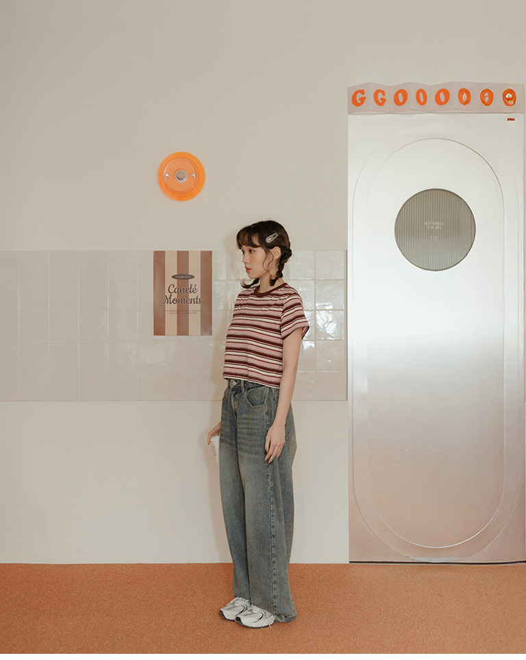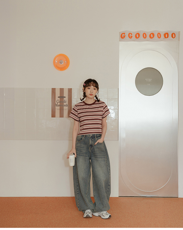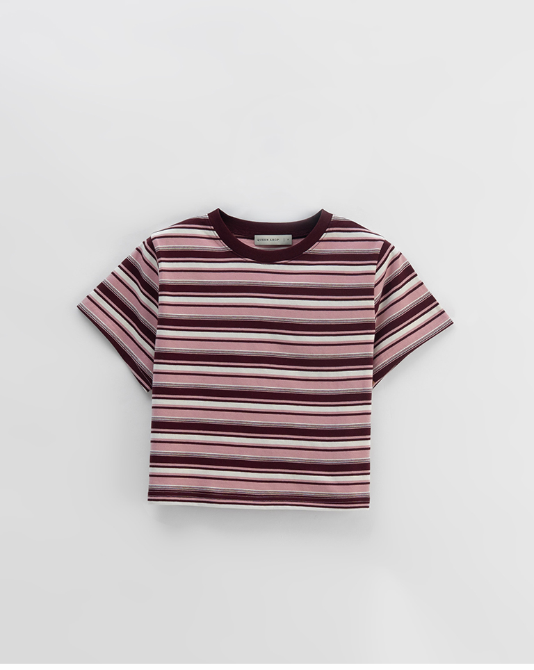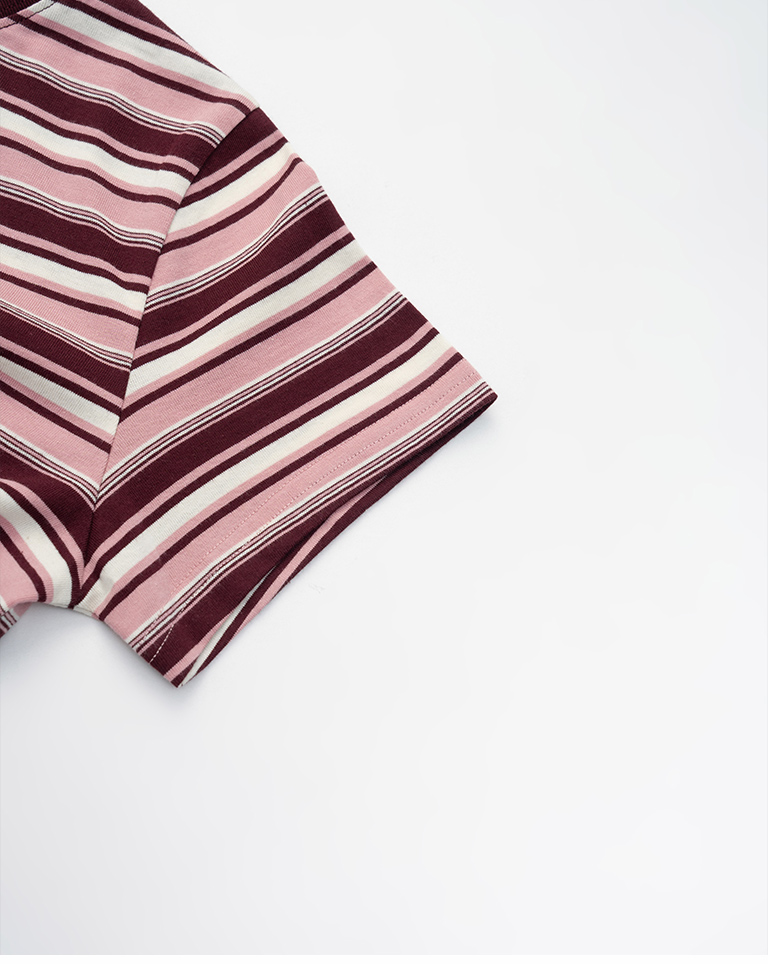 配色條紋短版短袖上衣