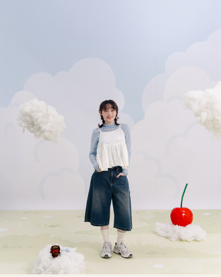 搭配背心或洋裝疊穿更有層次 整體造型甜美中帶點個性氛圍