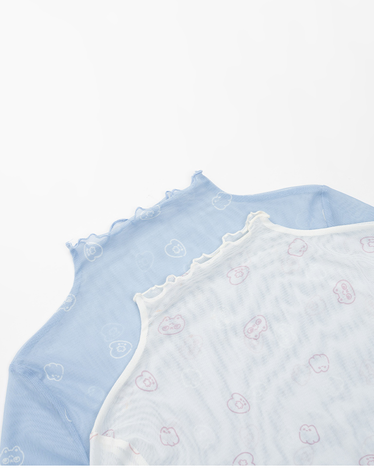 S~L身形實測!分尺寸皺皺木耳邊透膚高領長袖上衣