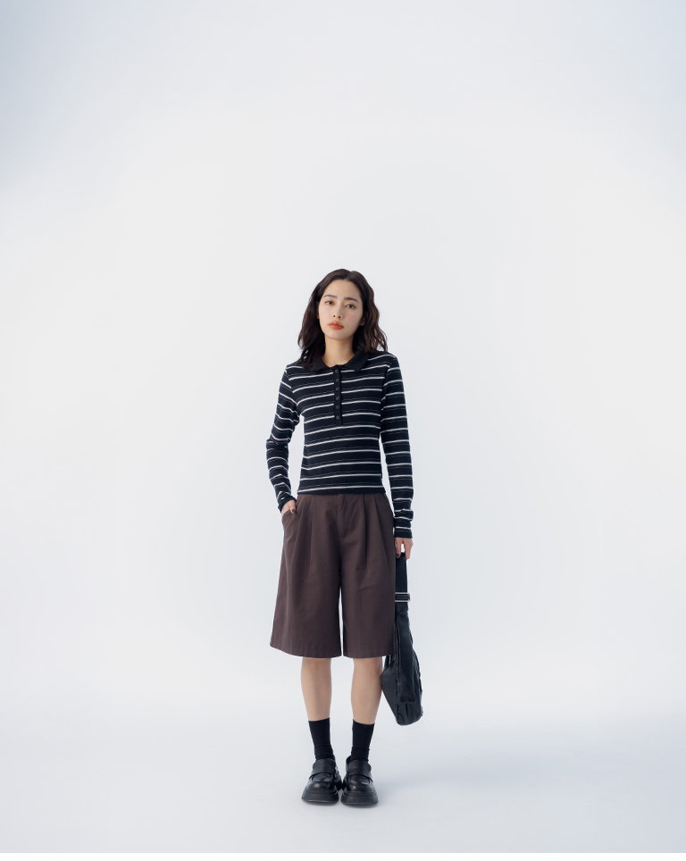 細緻條紋搭配翻領設計 勾勒俐落輪廓