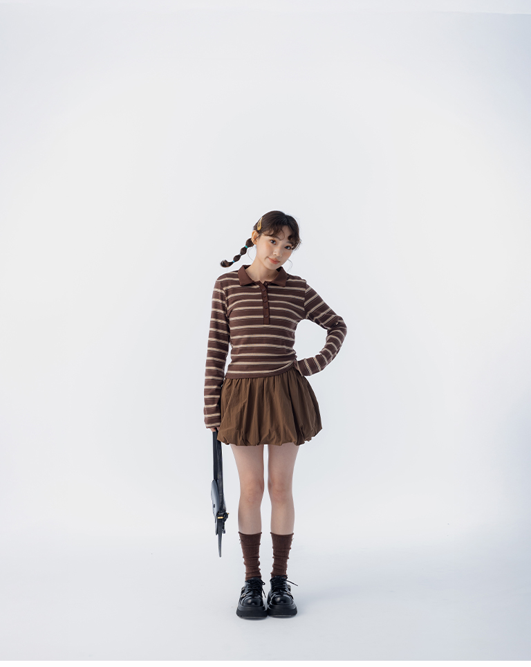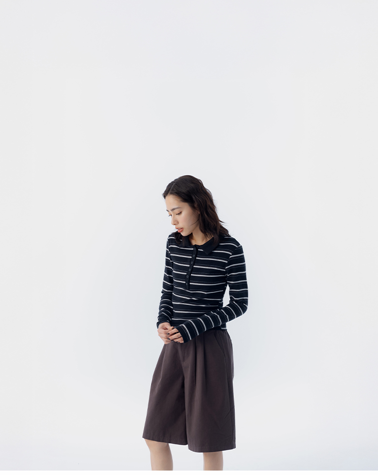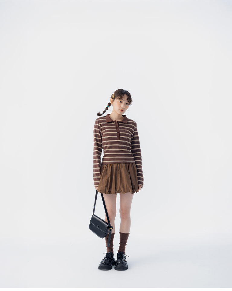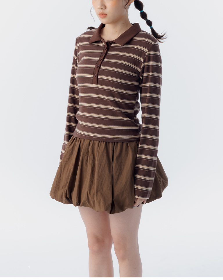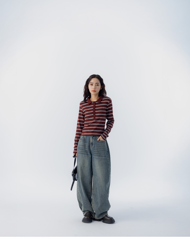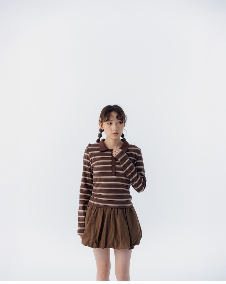 配色條紋合身polo領長袖上衣 三色售