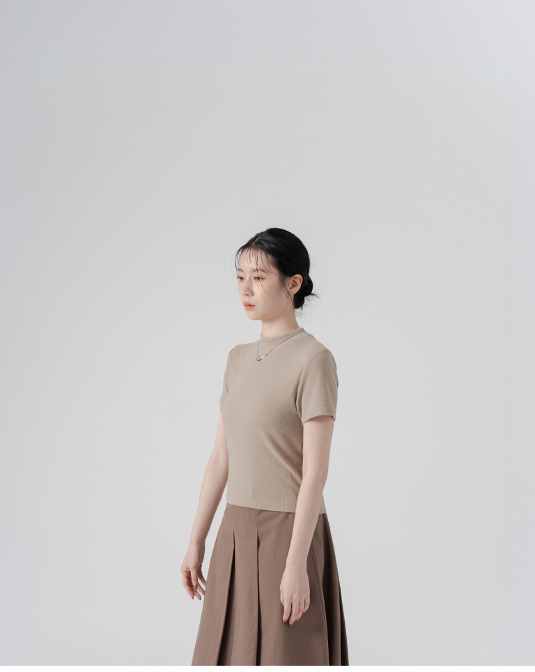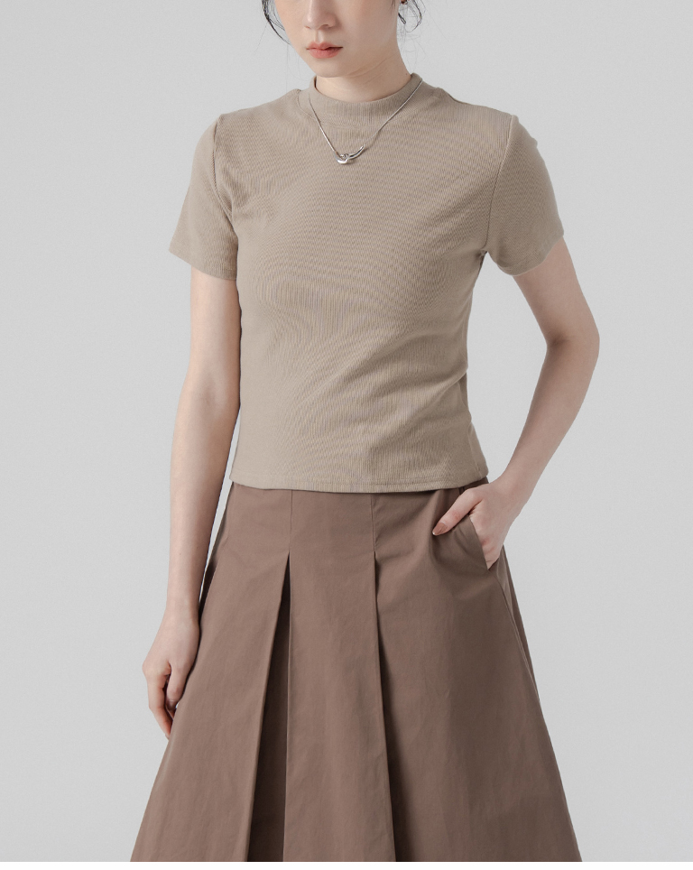 S~L身形實測!分尺寸皺皺木耳邊透膚高領長袖上衣