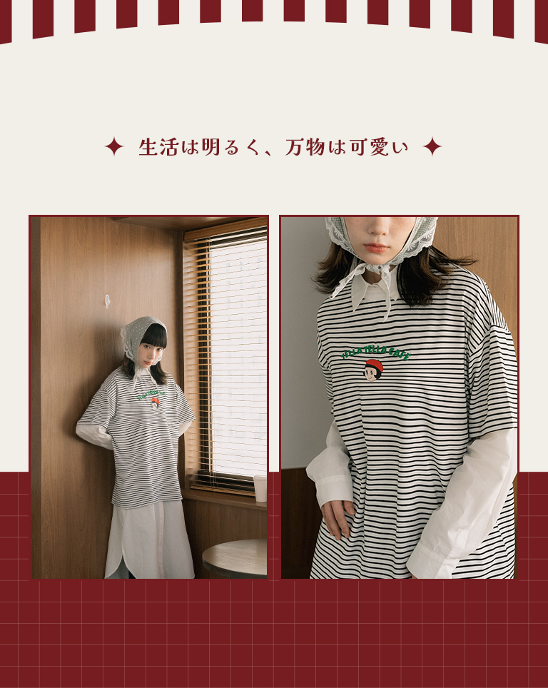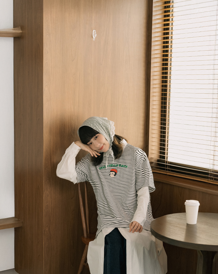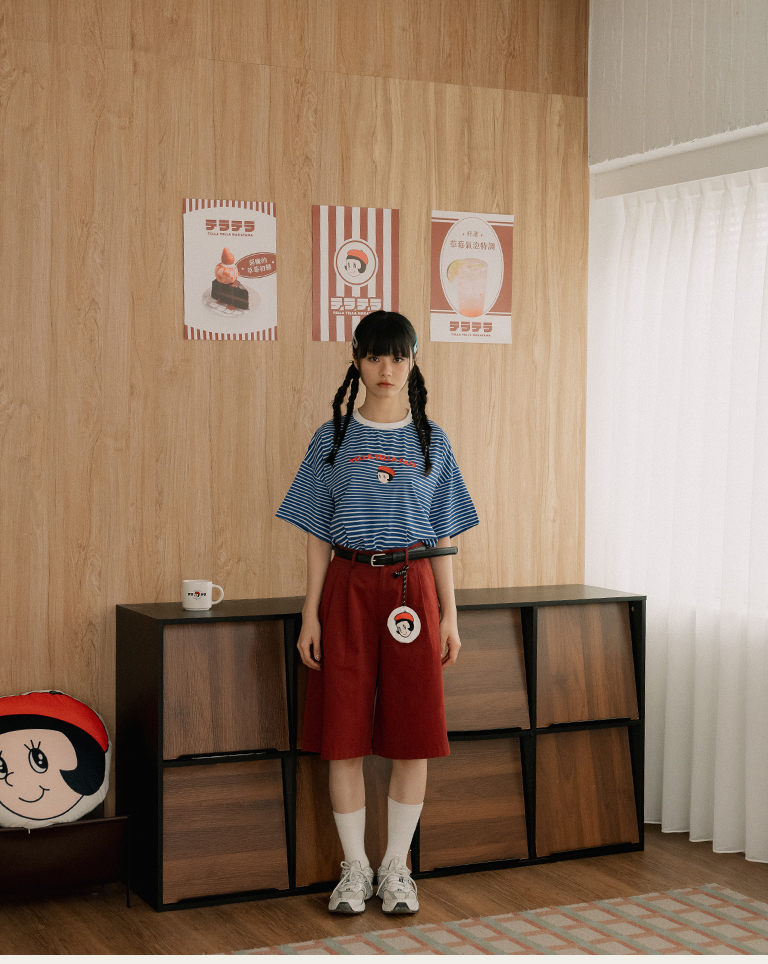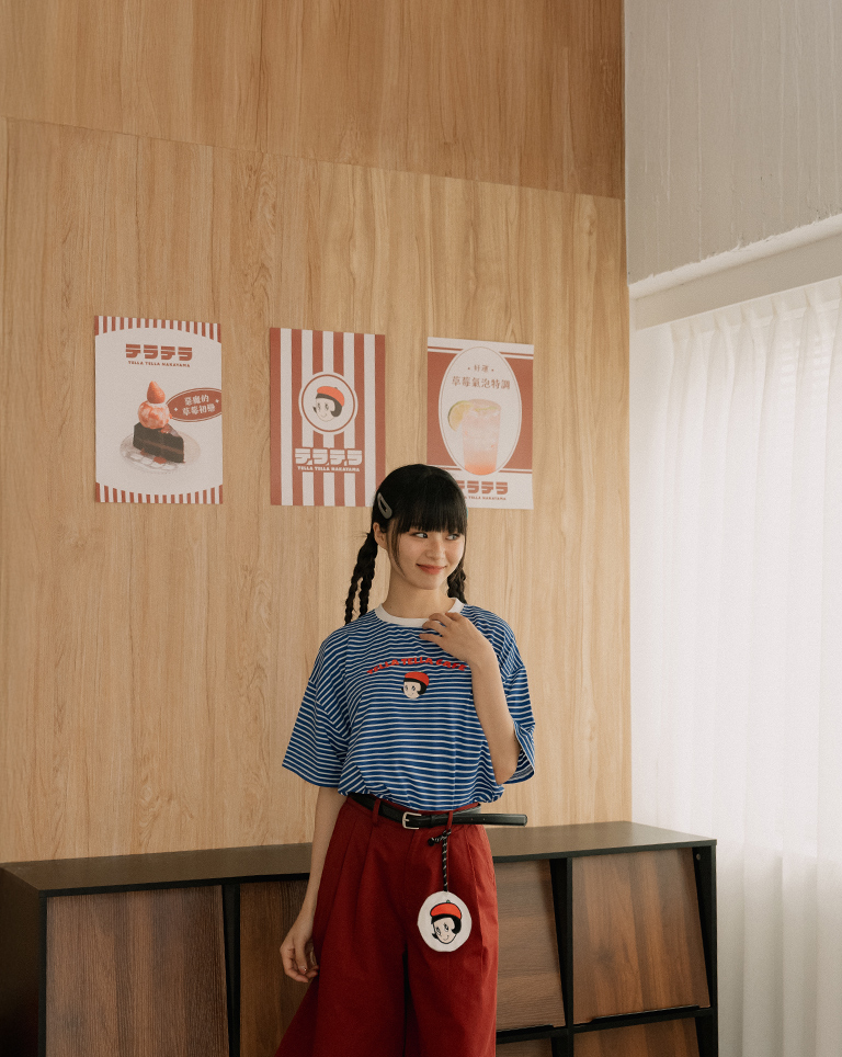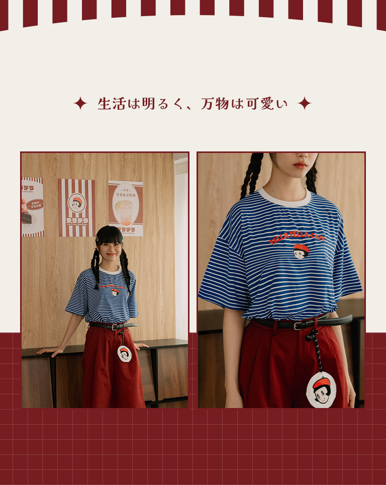 Tella Tella 配色條紋印圖短袖上衣 兩色售