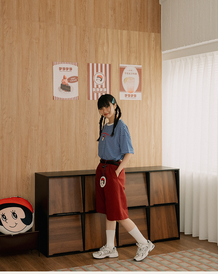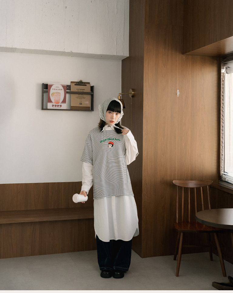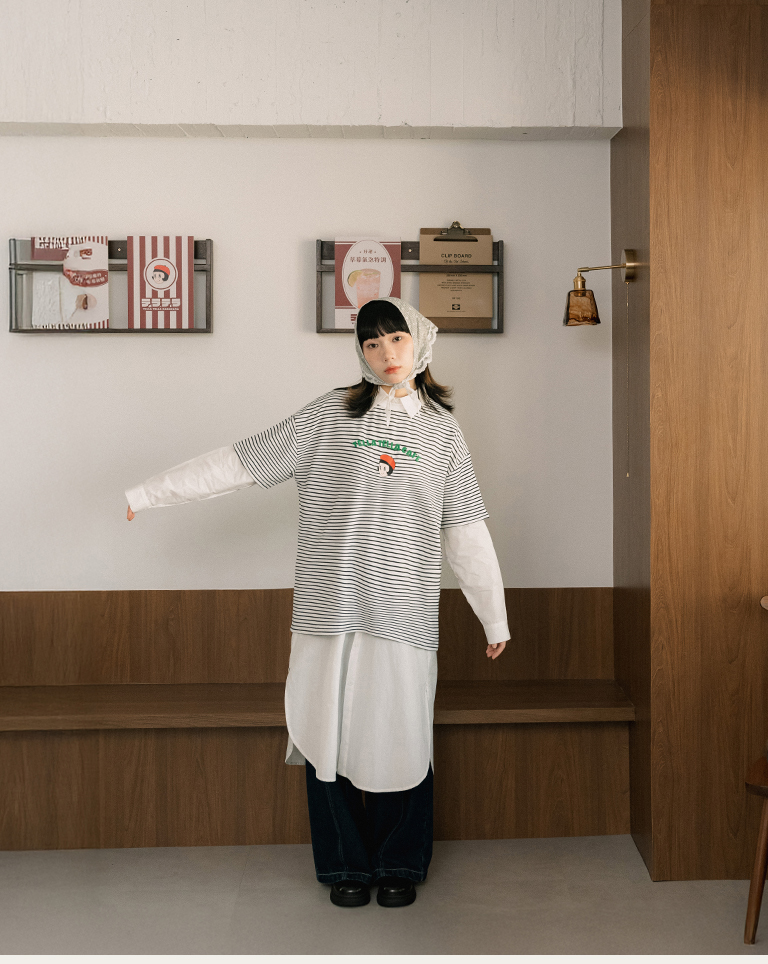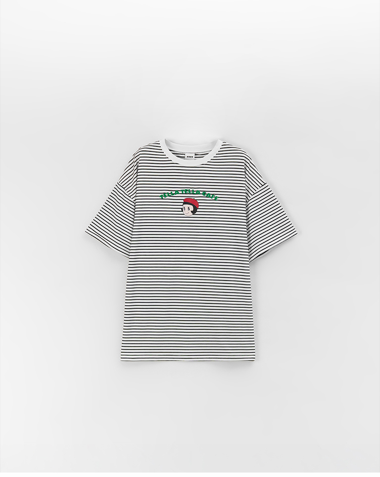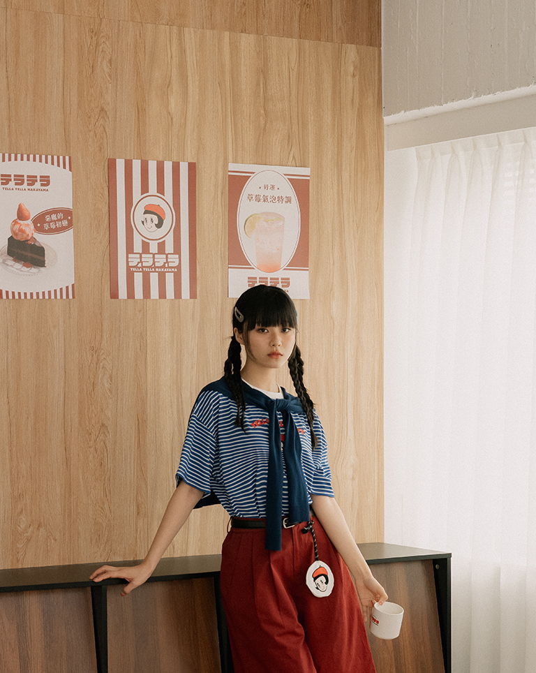 Tella Tella 配色條紋印圖短袖上衣 兩色售
