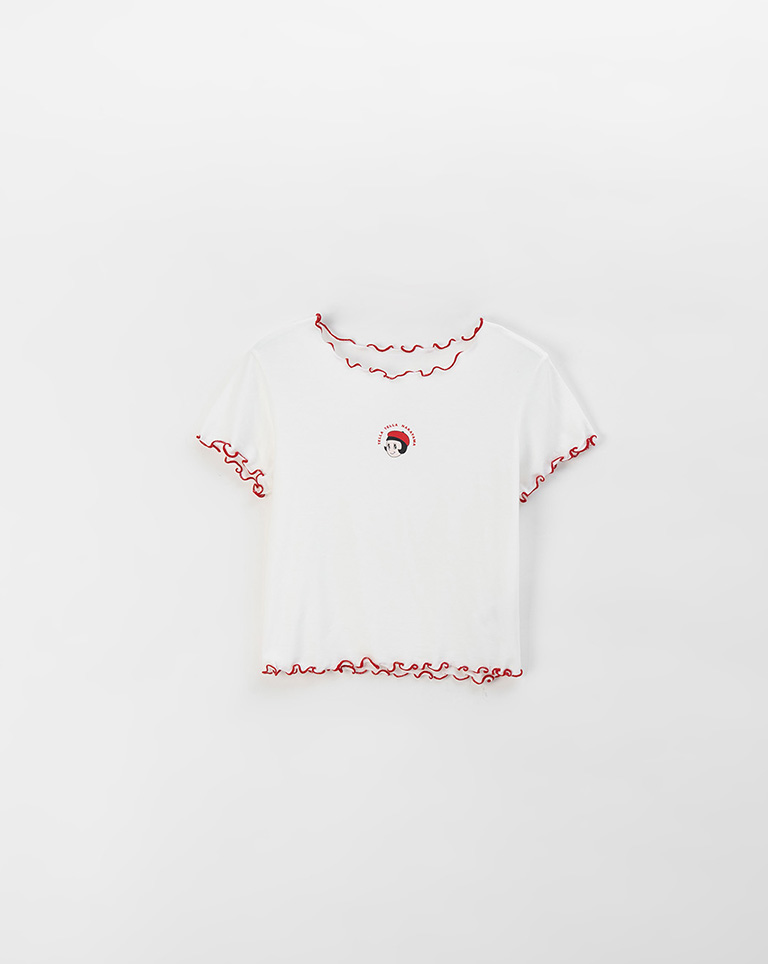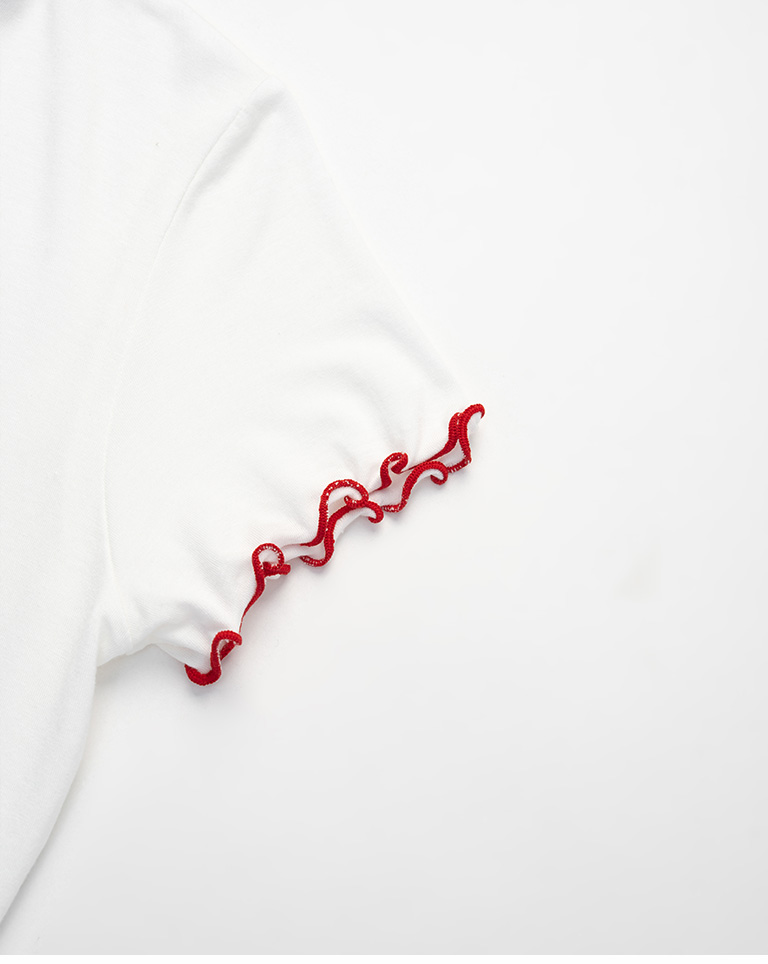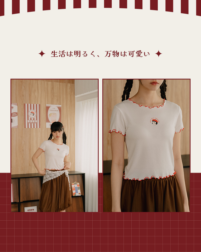 MIT Tella Tella 配色木耳邊短袖上衣 S/M
