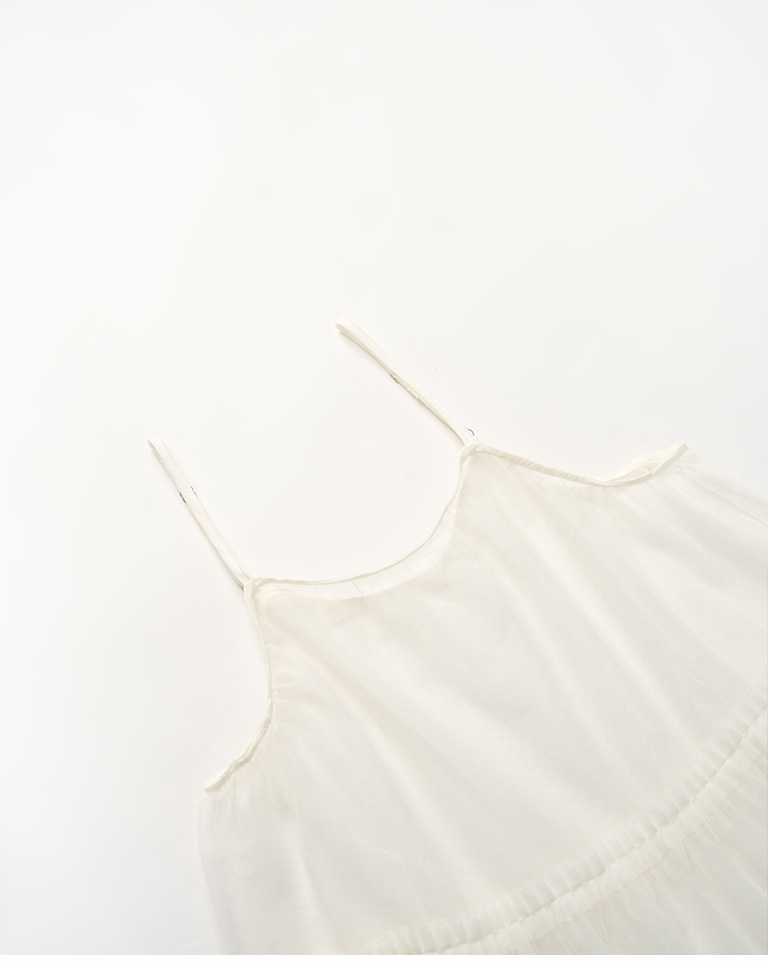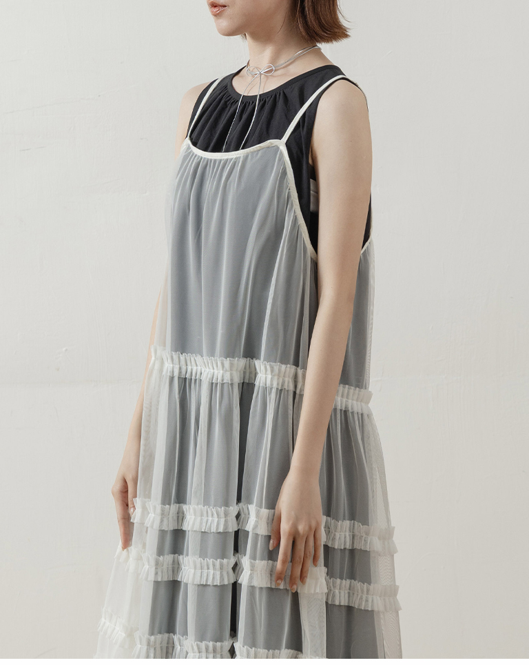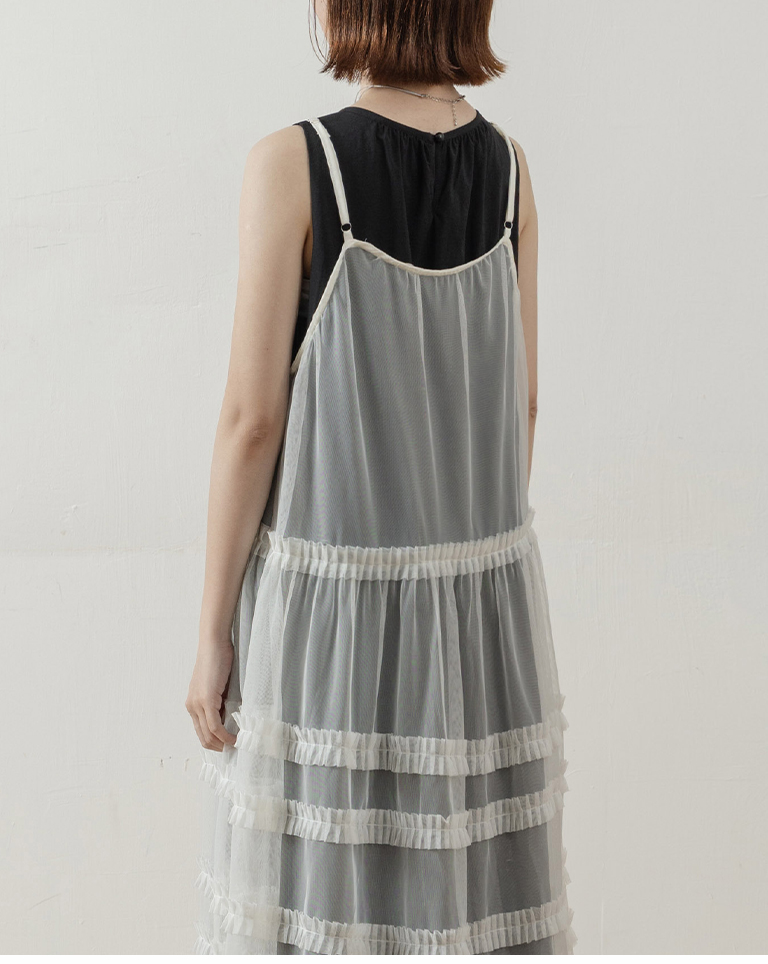 多層荷葉透紗細肩長罩衫背心