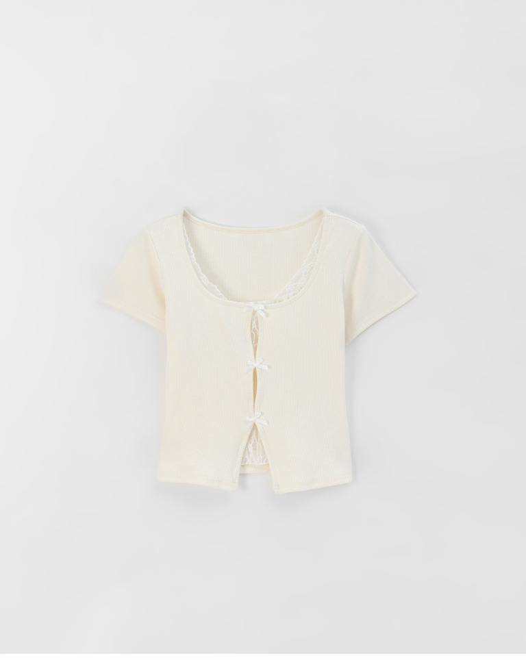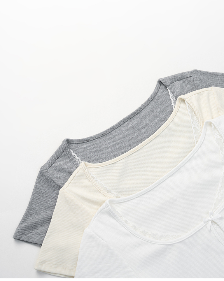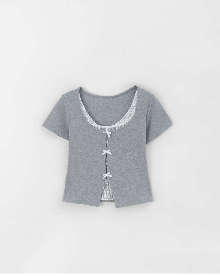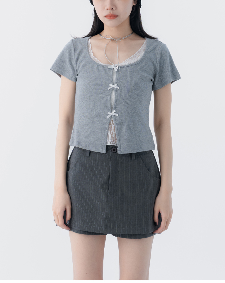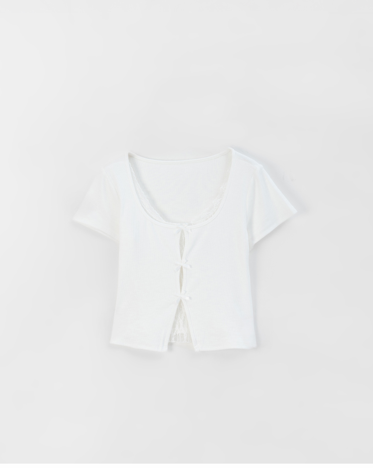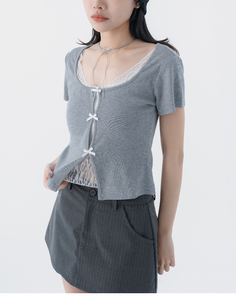 假兩件蕾絲剪接設計短袖上衣 三色售