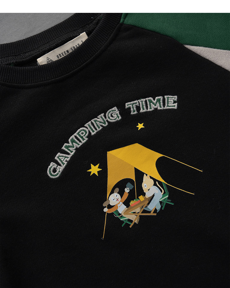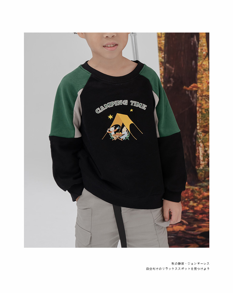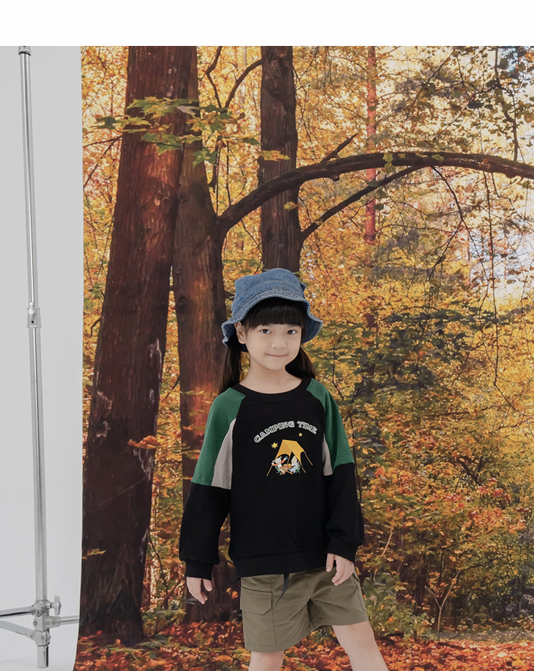 童裝 親子系列 露營印圖撞色拼接衛衣M/L/XL