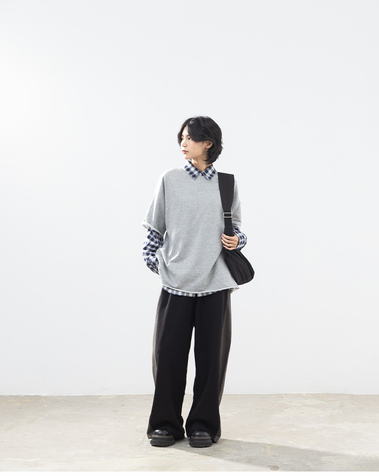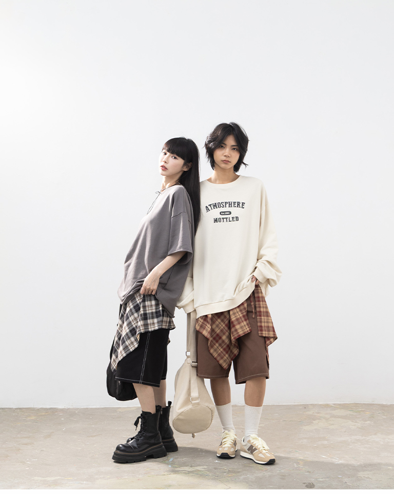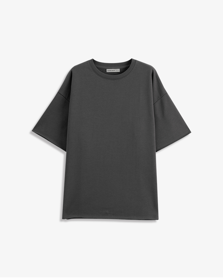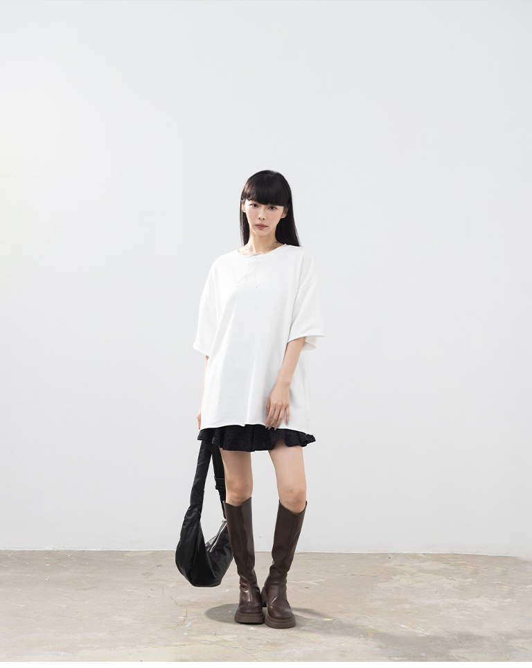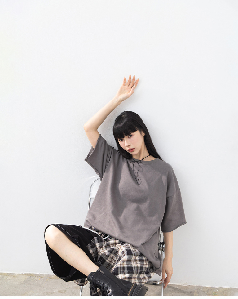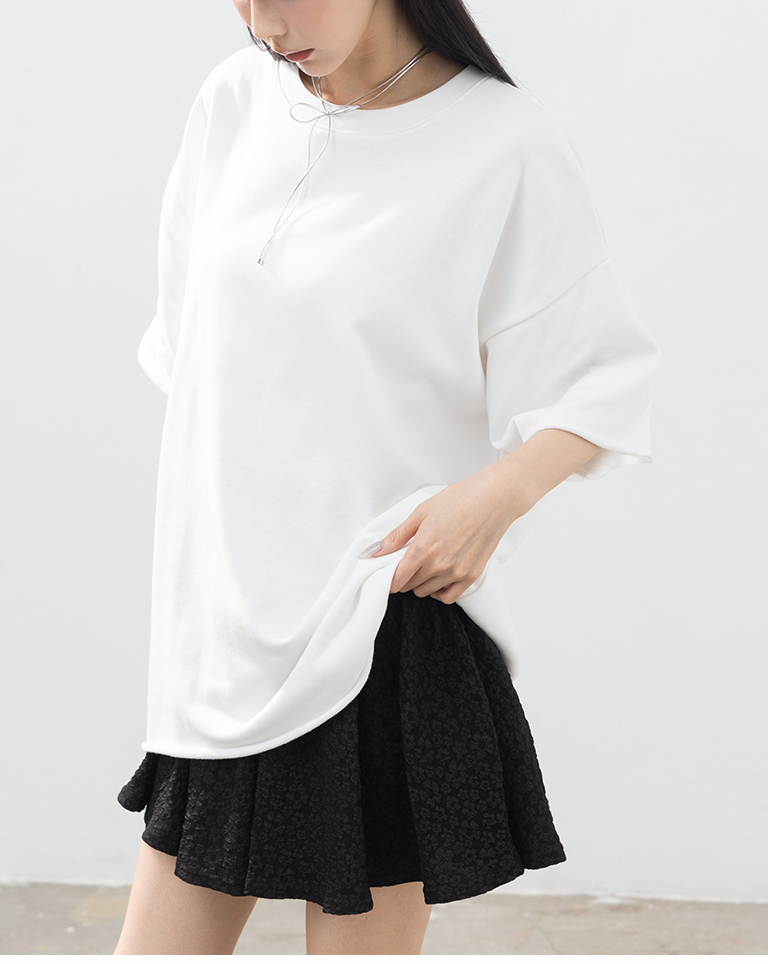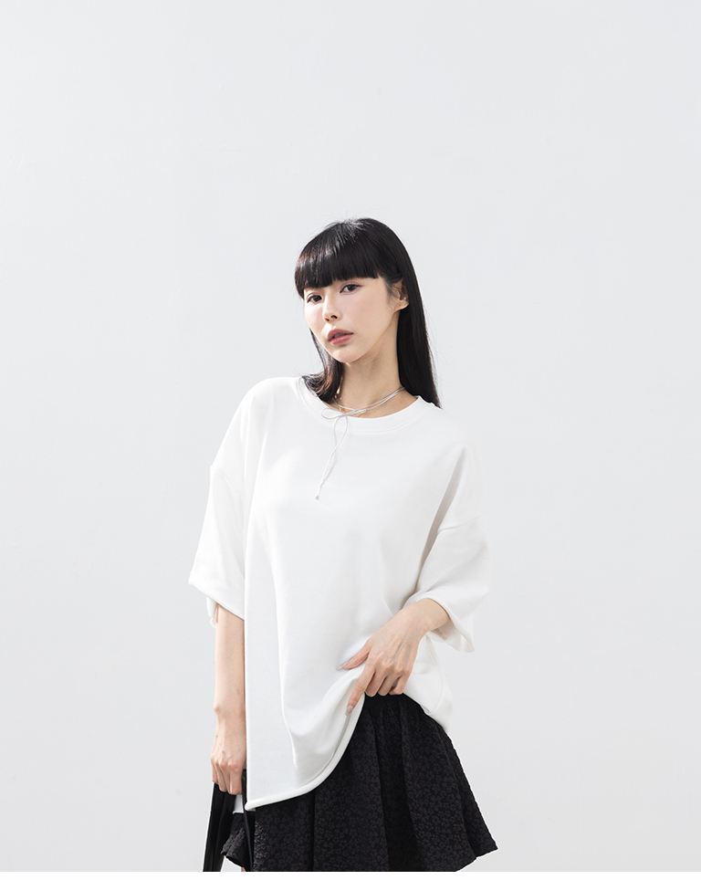 基礎素面捲邊厚磅寬版短袖上衣 三色售
