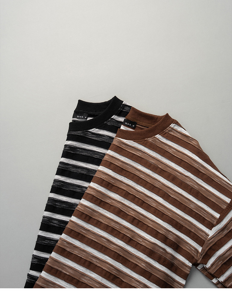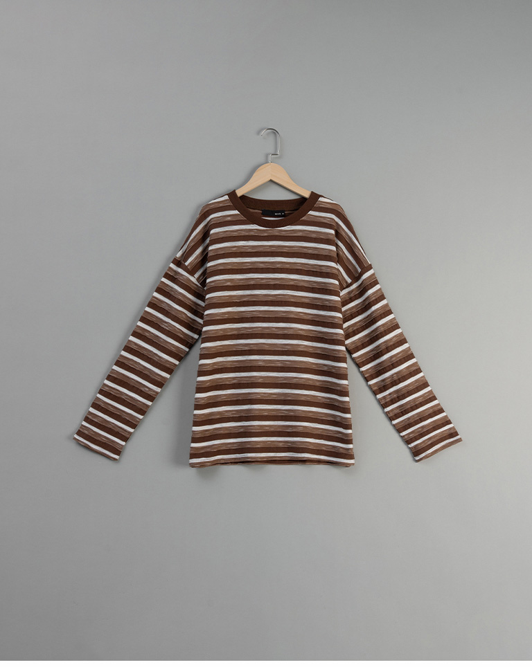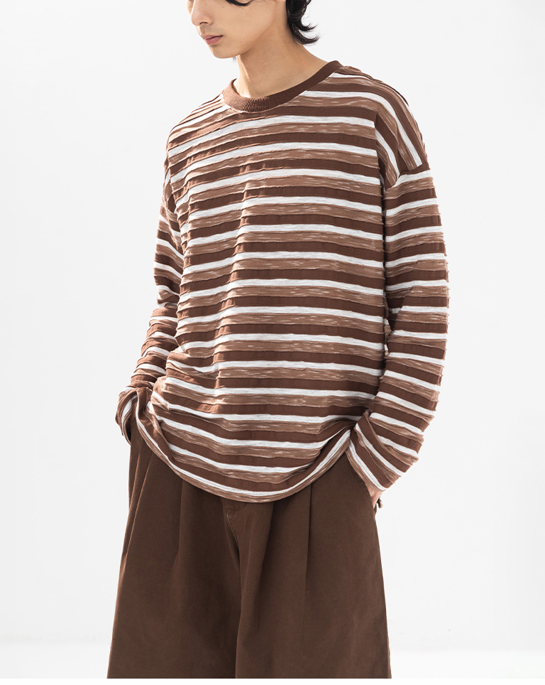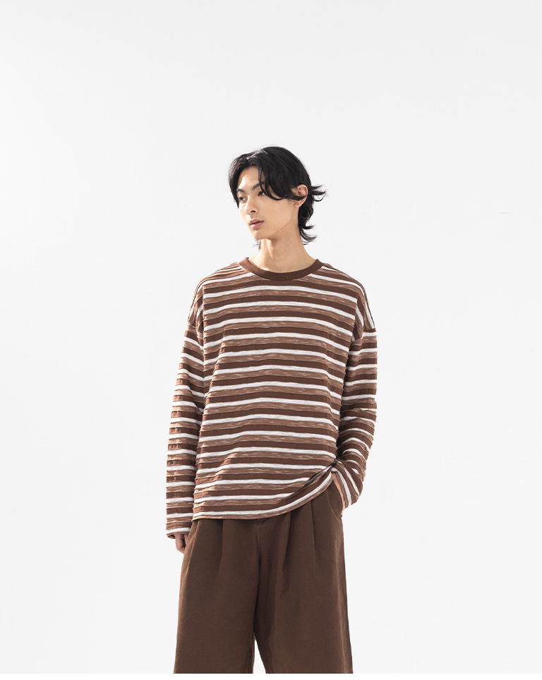 男裝 條紋拼接造型長袖上衣-咖 M-XL