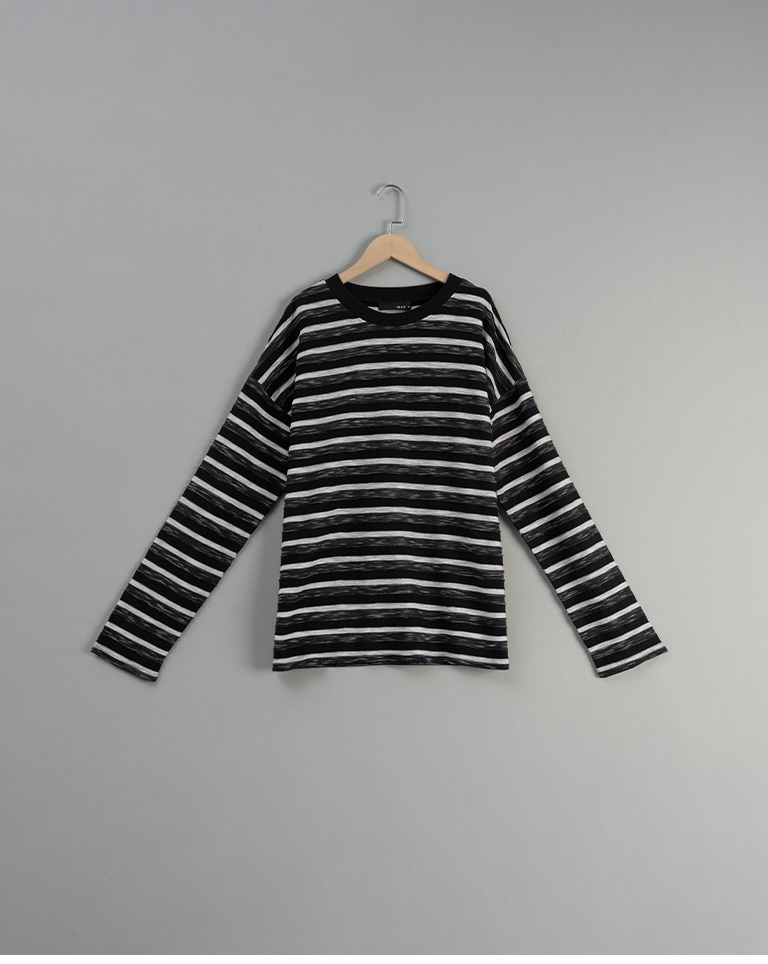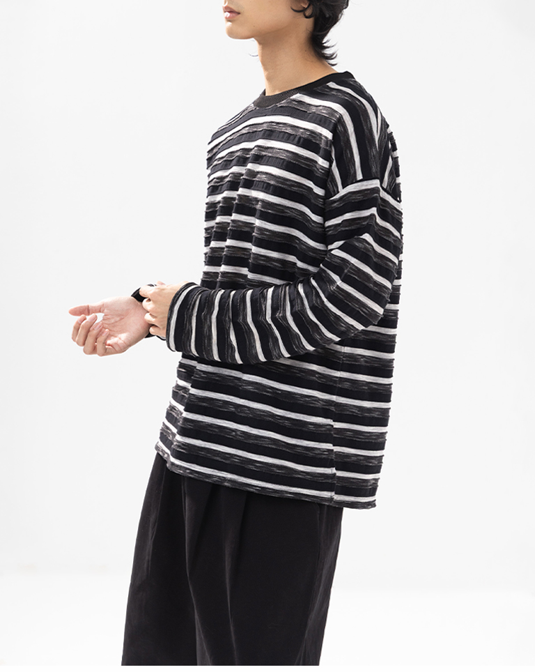 男裝 條紋拼接造型長袖上衣-黑 M-XL