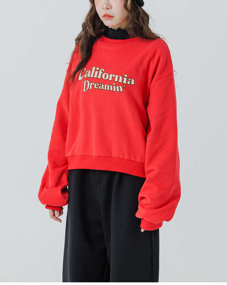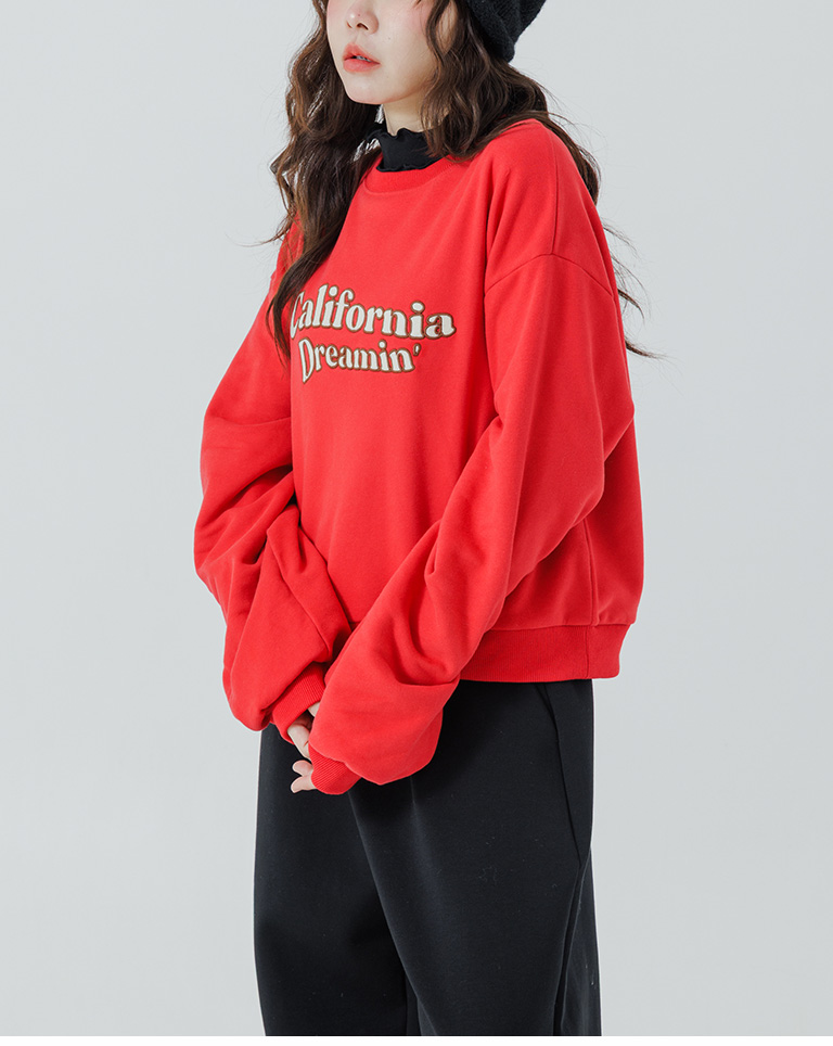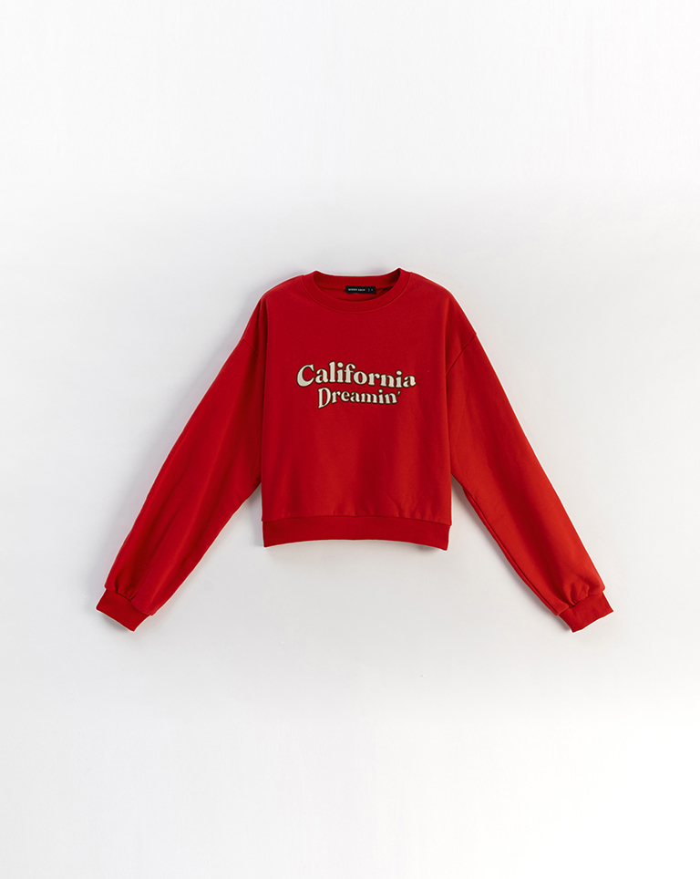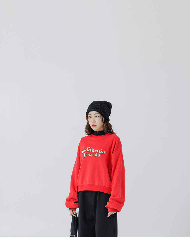 復古字體內刷毛長袖短版衛衣-紅 S/M