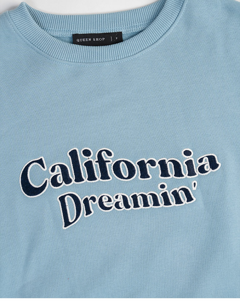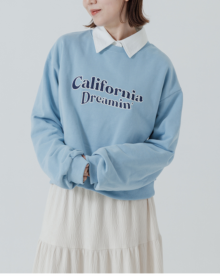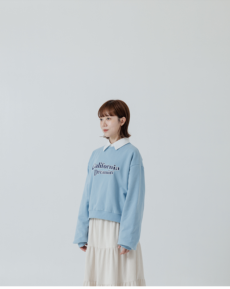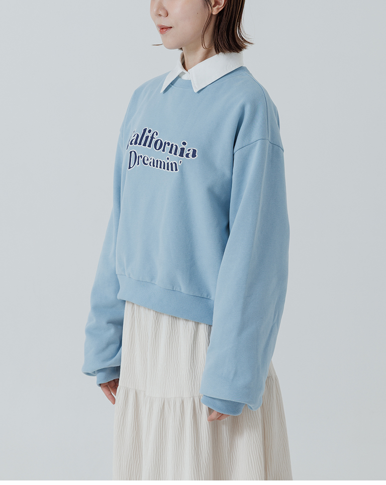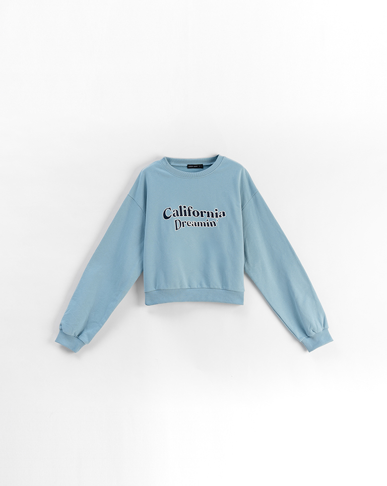復古字體內刷毛長袖短版衛衣-藍 S/M