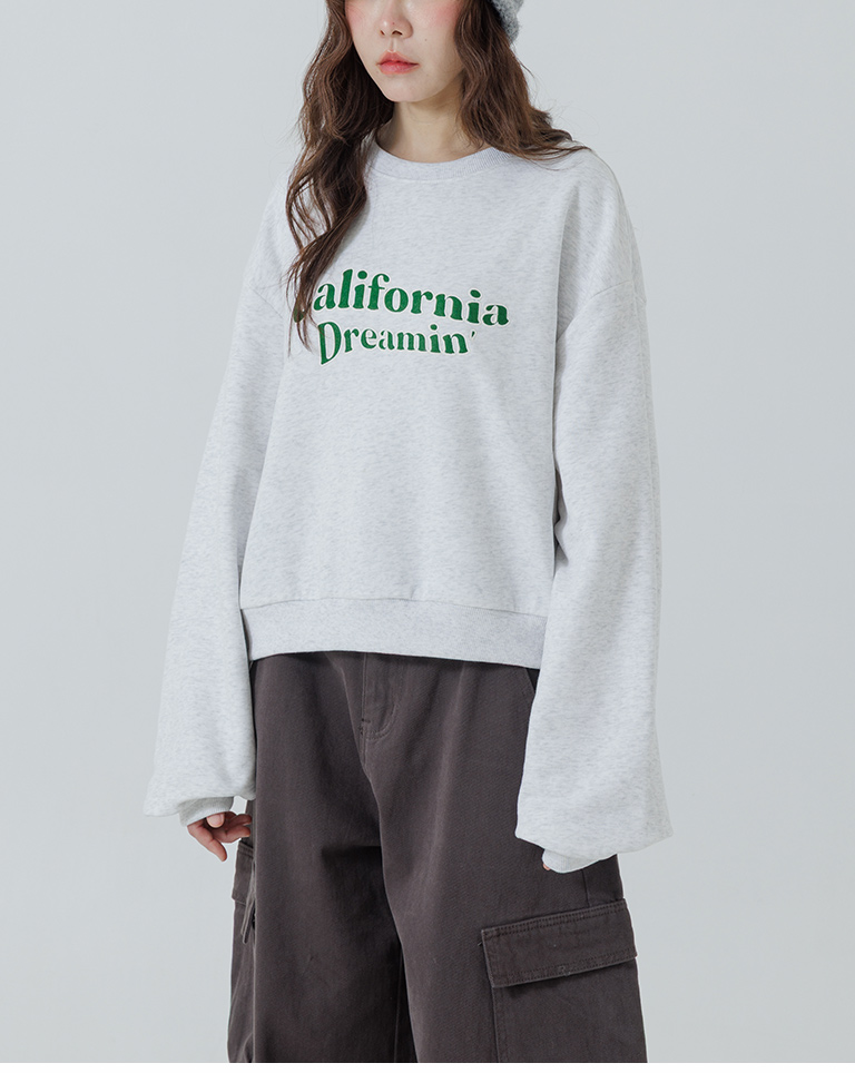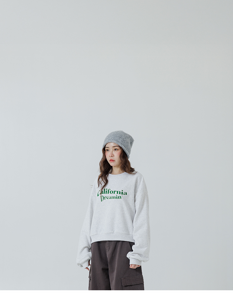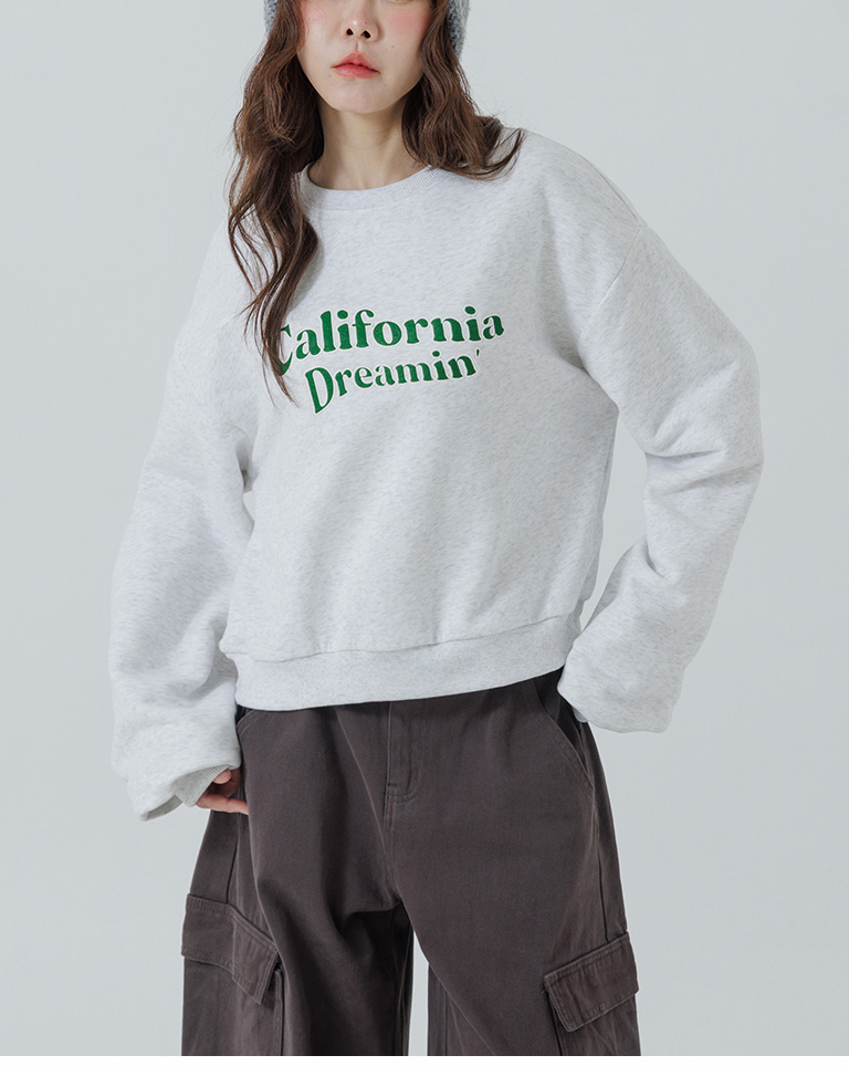 復古字體內刷毛長袖短版衛衣-灰 S/M