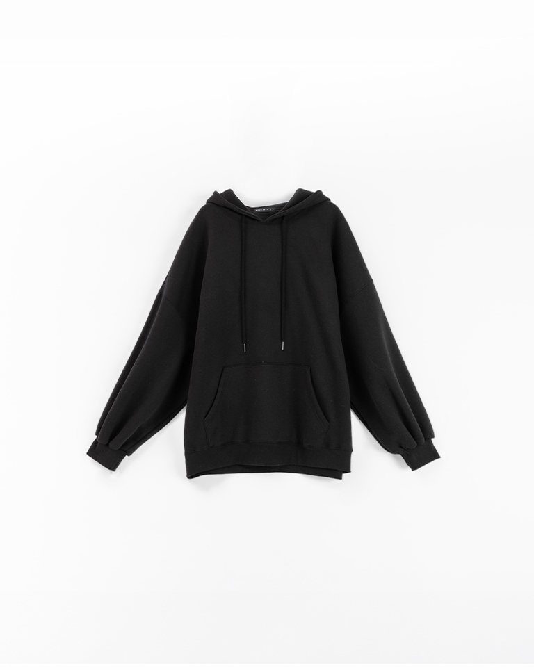 MIT 素面口袋造型刷毛連帽衛衣-黑