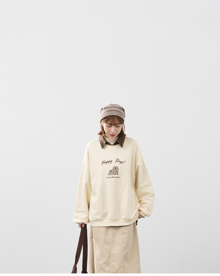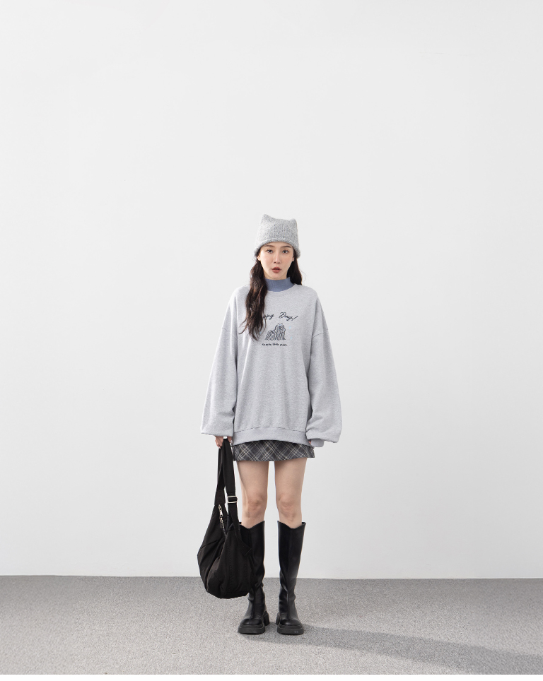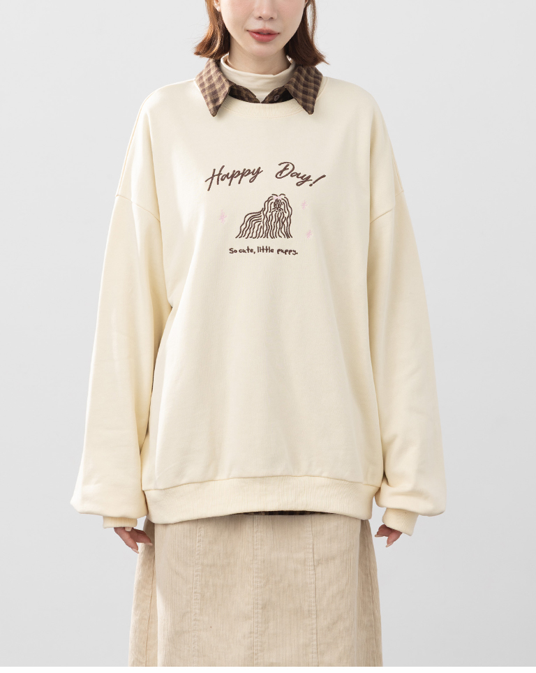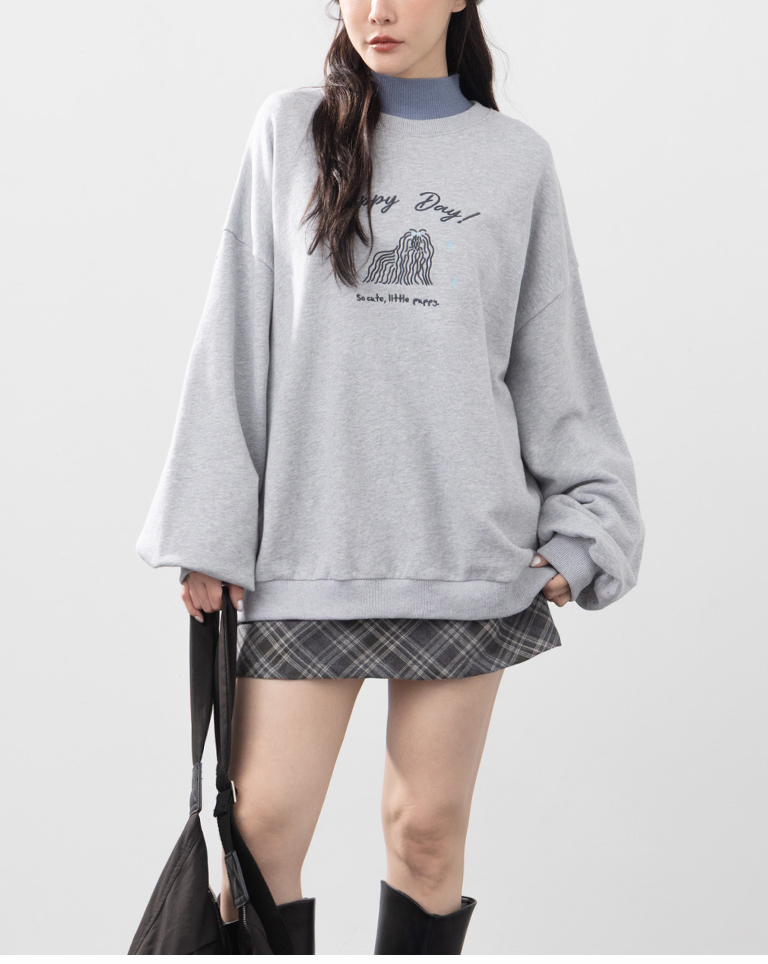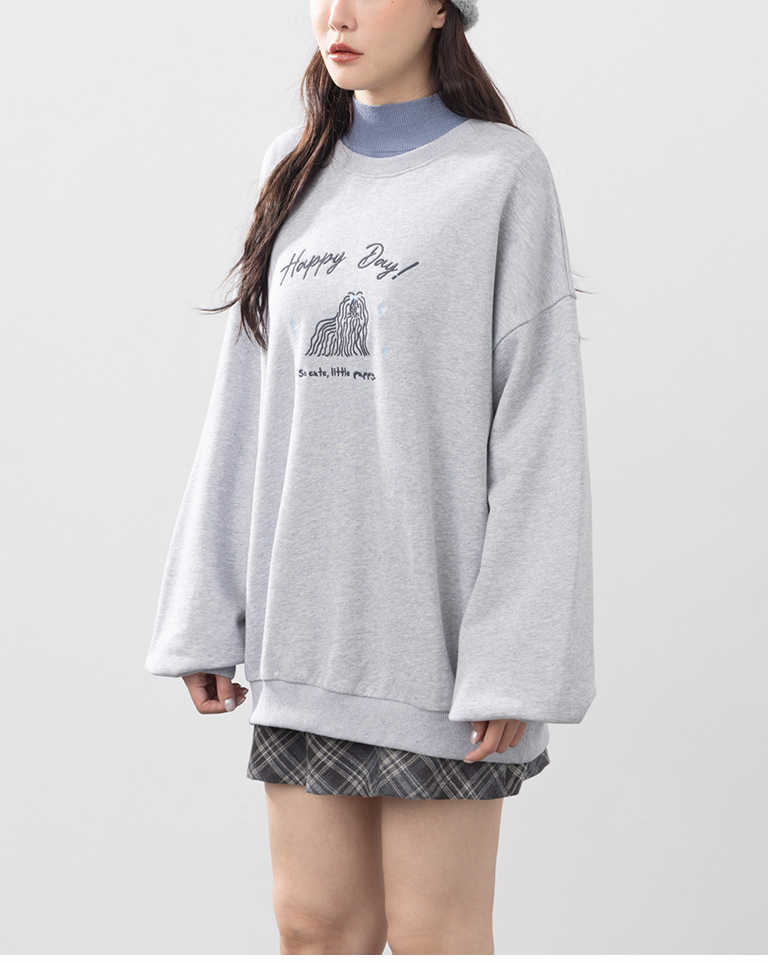 英文狗狗刺繡造型寬版衛衣 兩色售