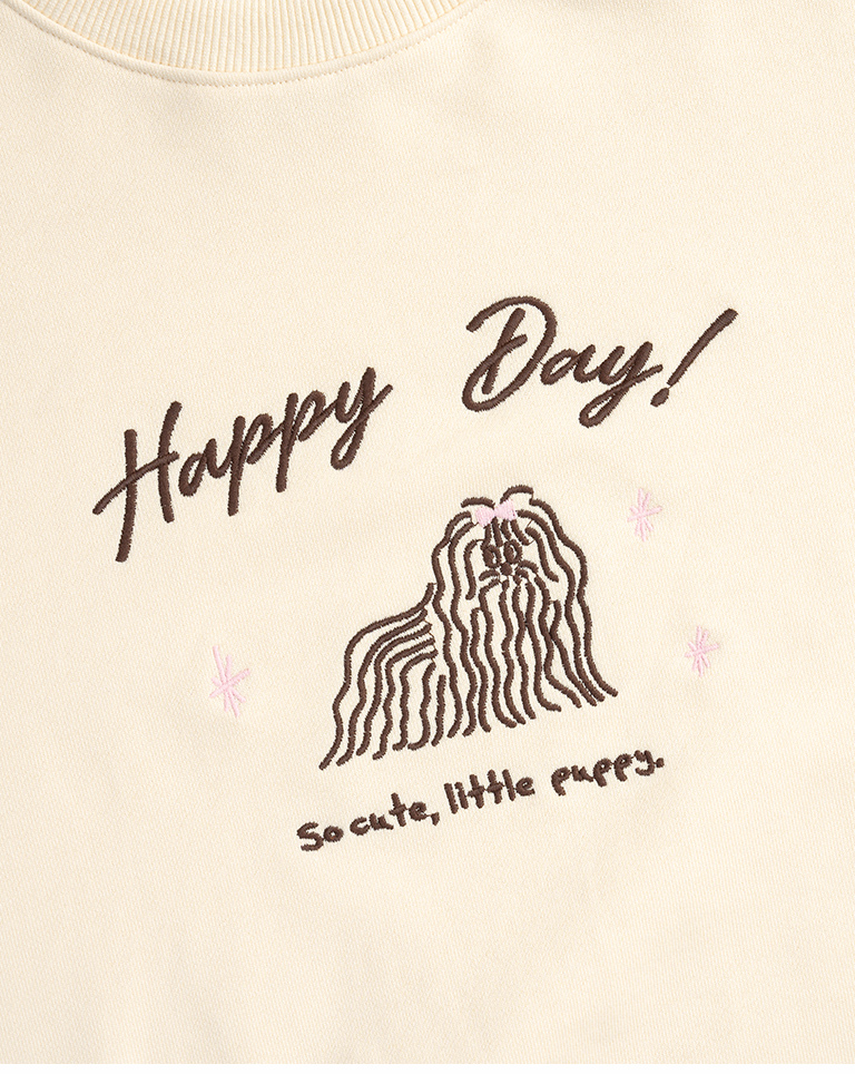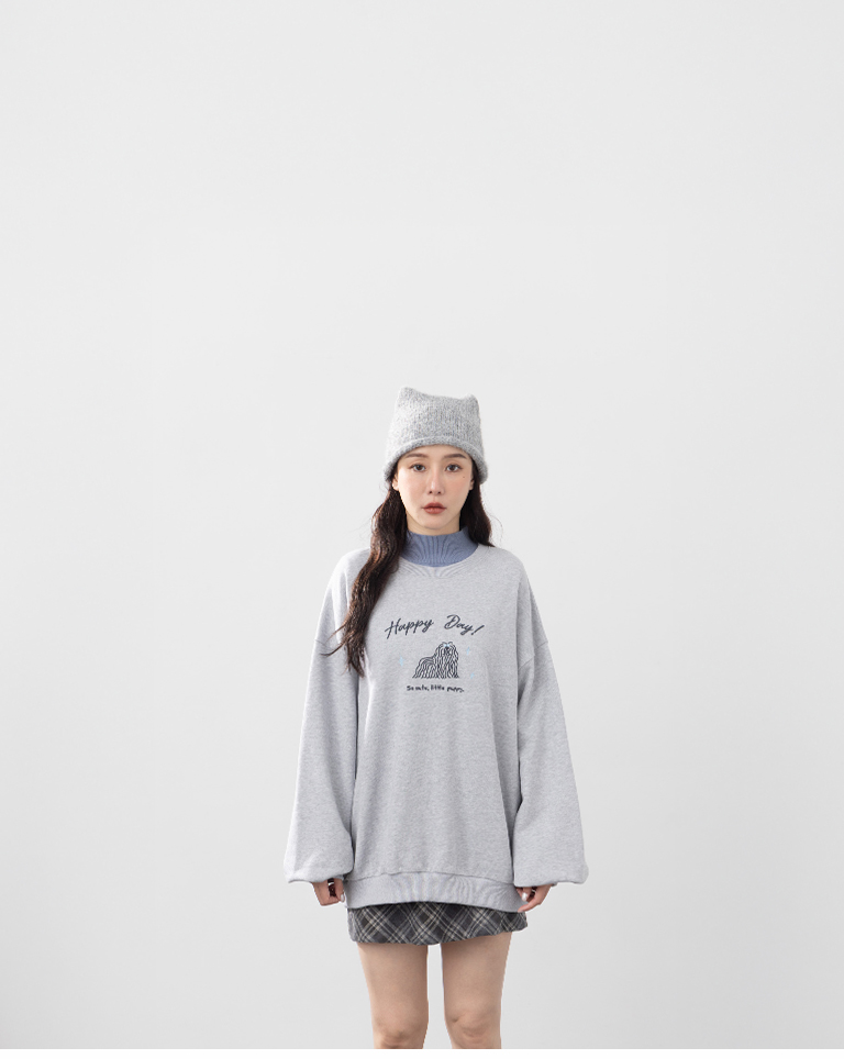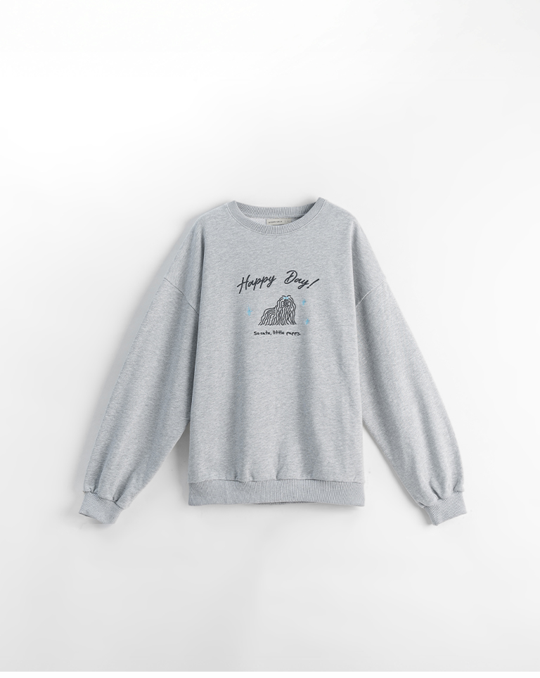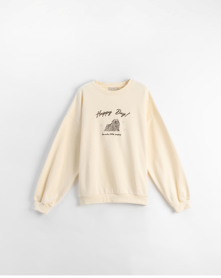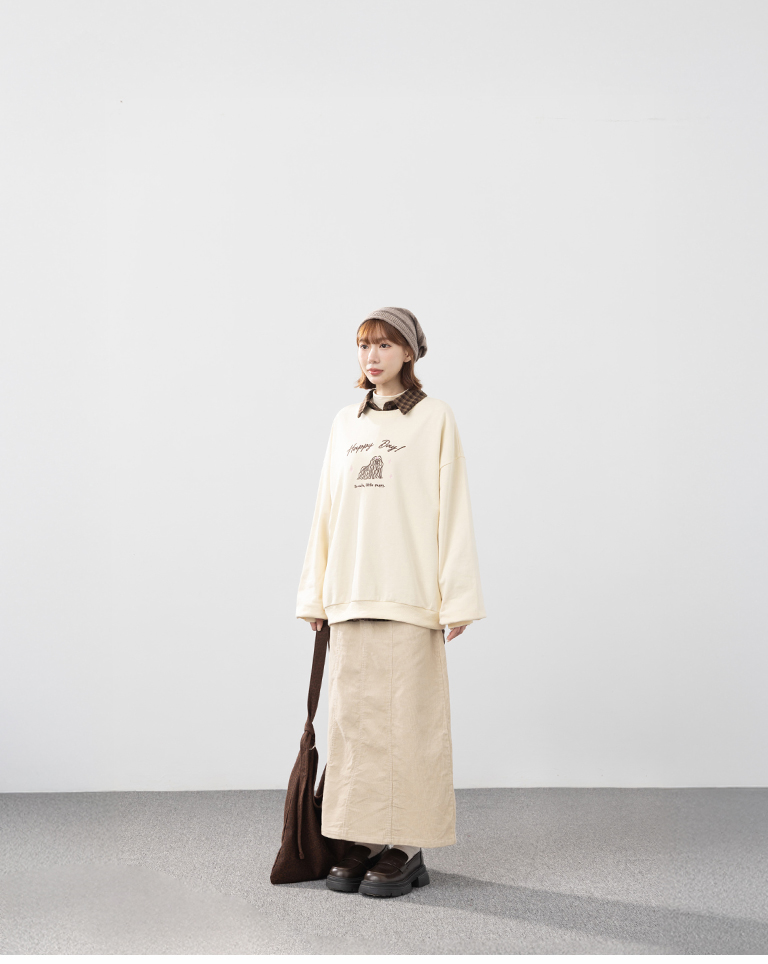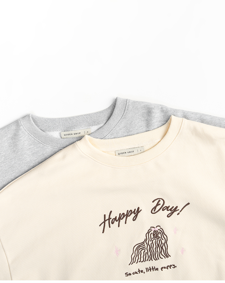 英文狗狗刺繡造型寬版衛衣 兩色售