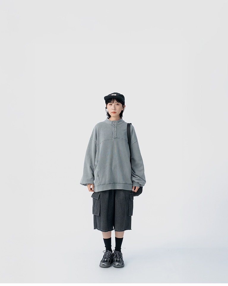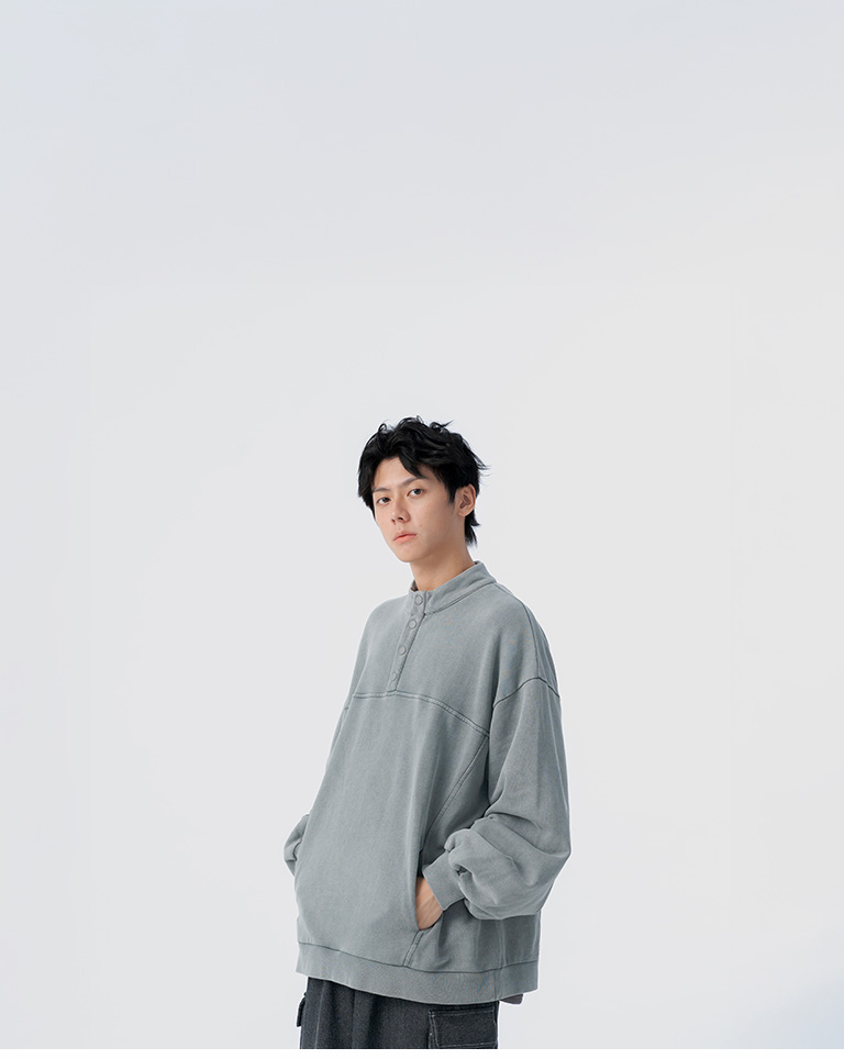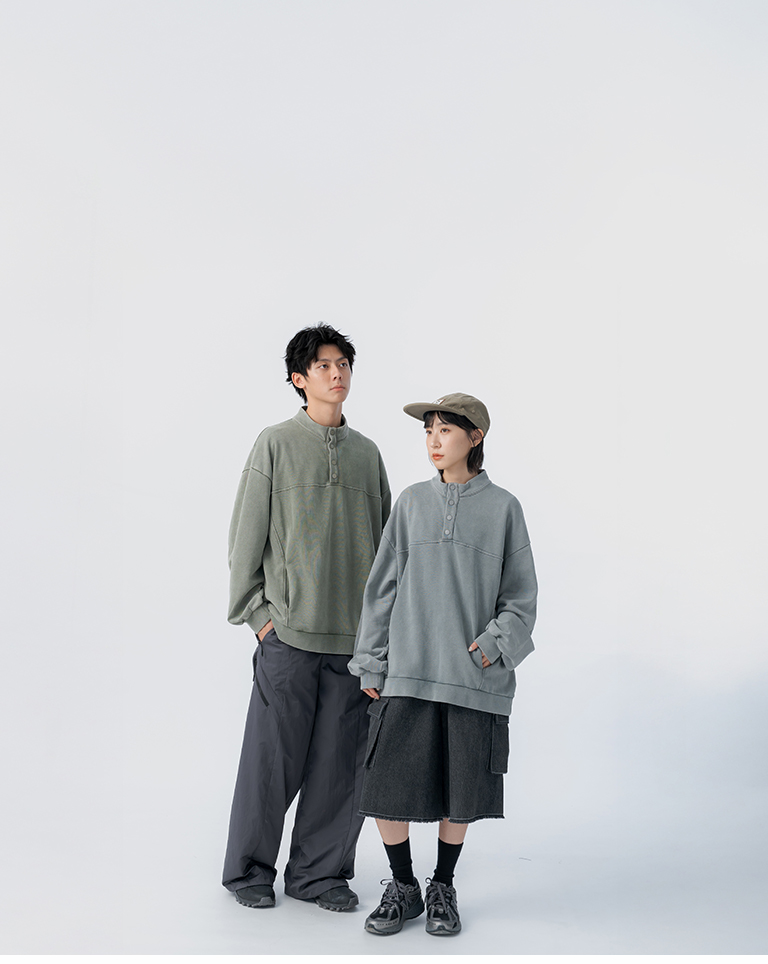 洗水設計半門襟排釦衛衣