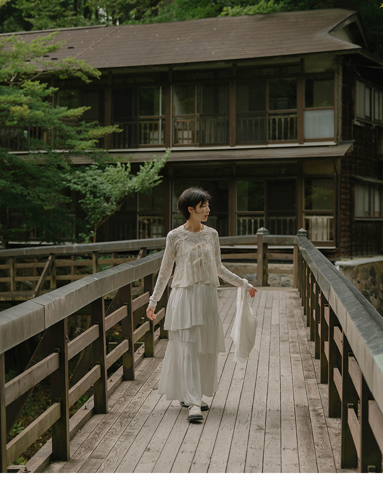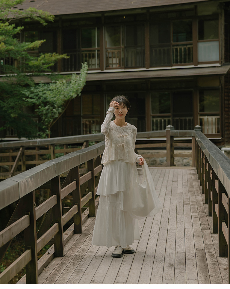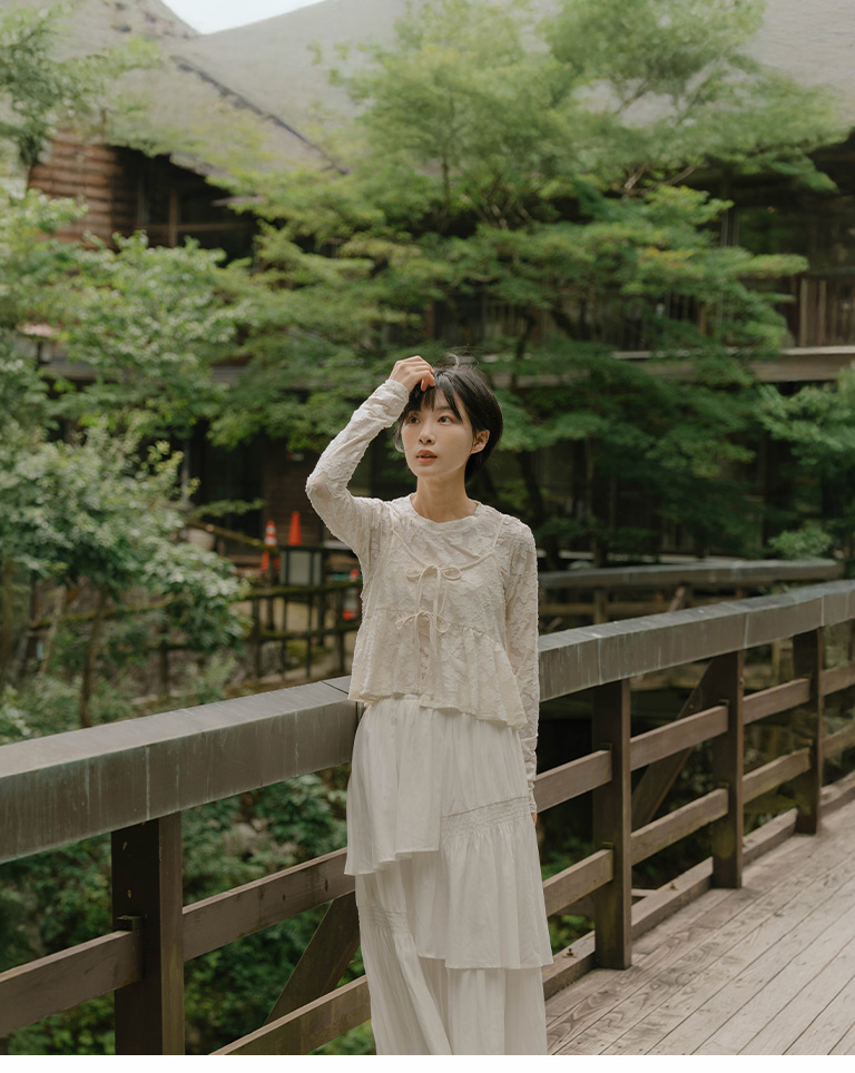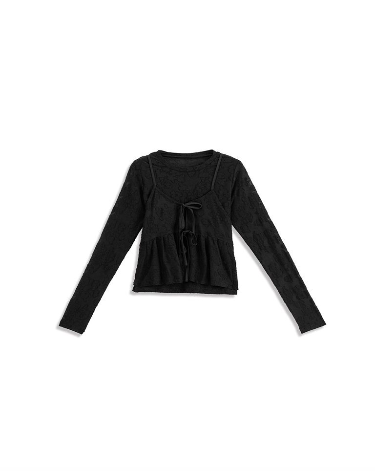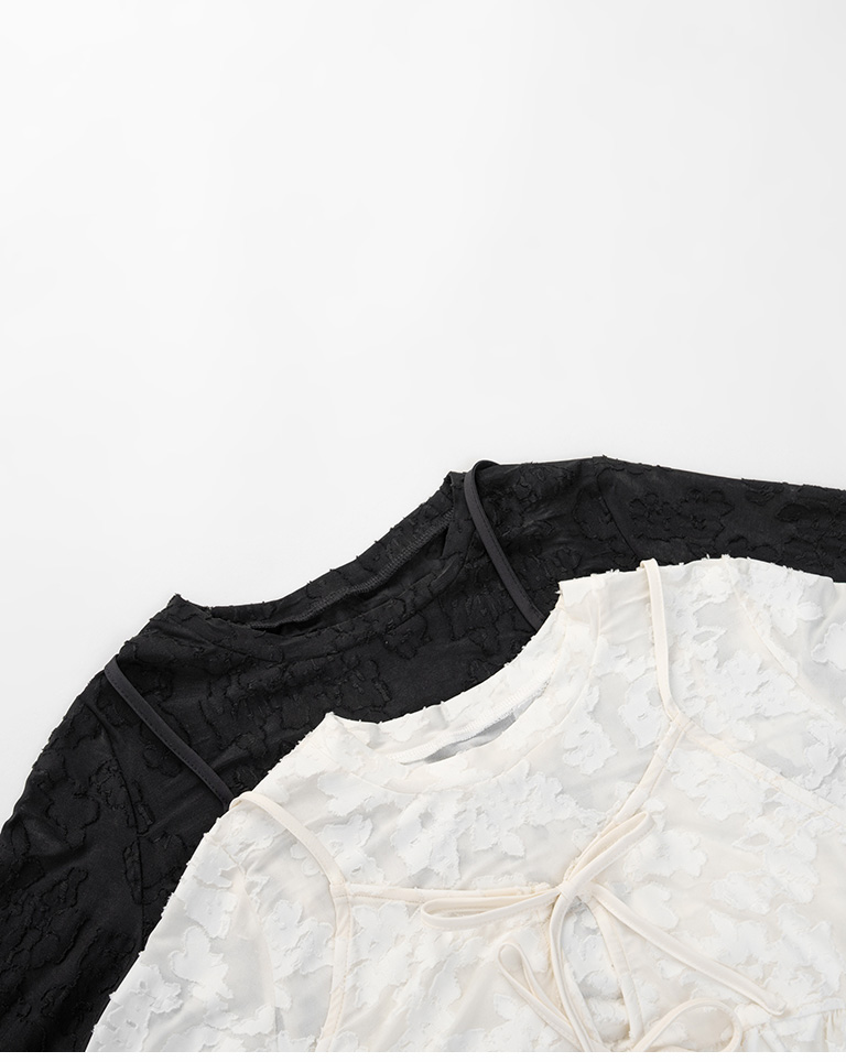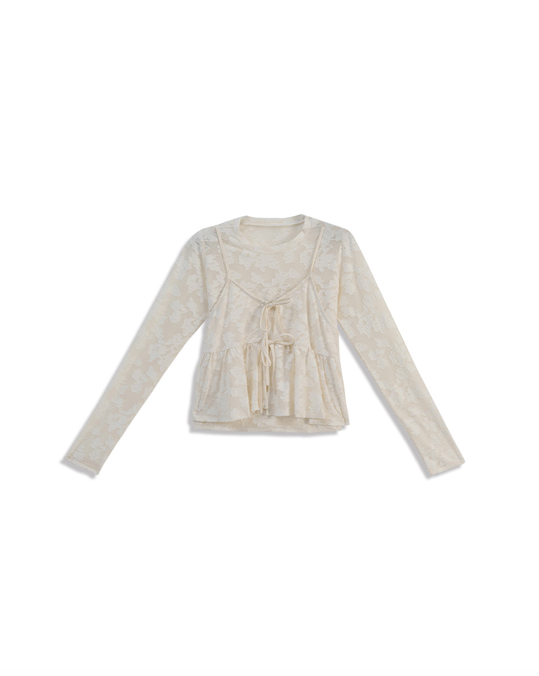緹花微透膚綁帶兩件式罩衫上衣