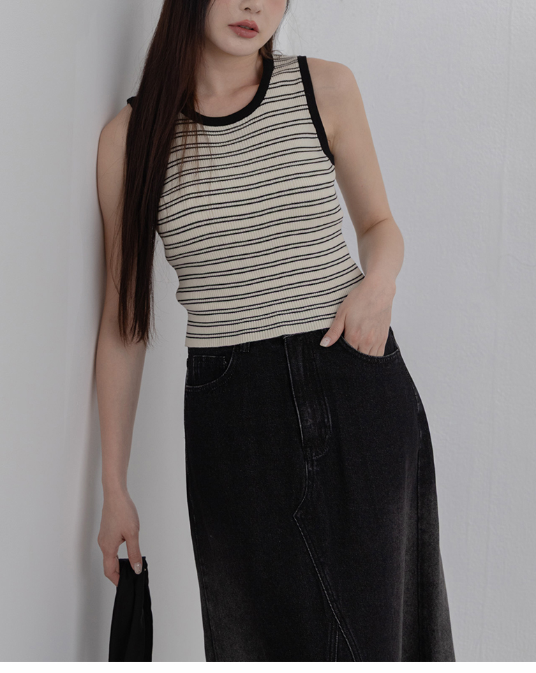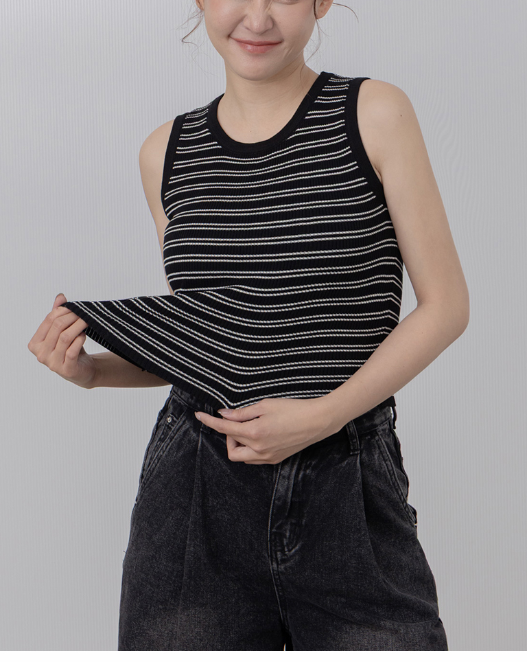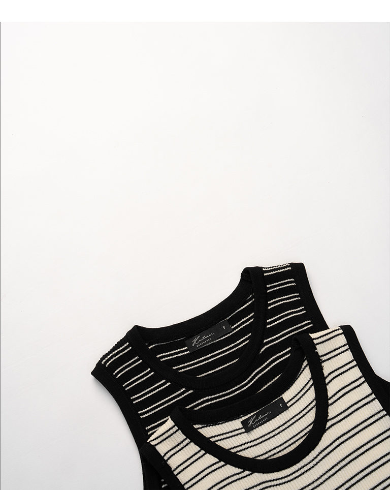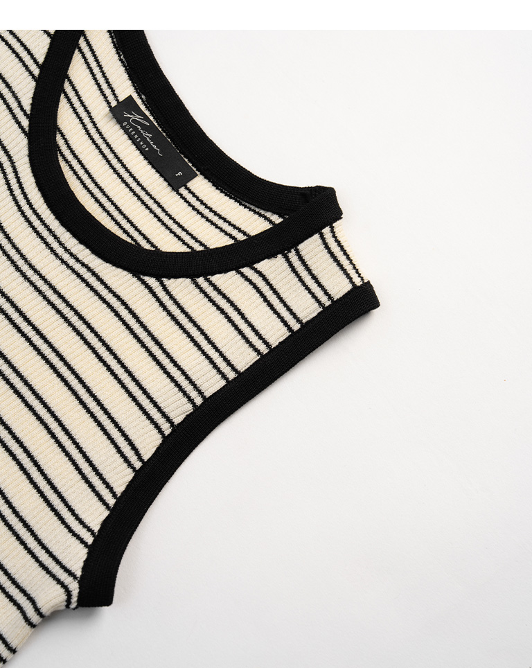 撞色坑條條紋針織背心 兩色售