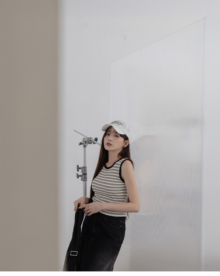 撞色坑條條紋針織背心