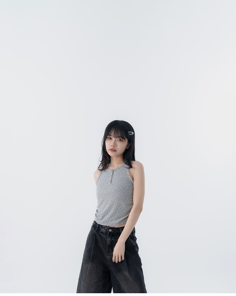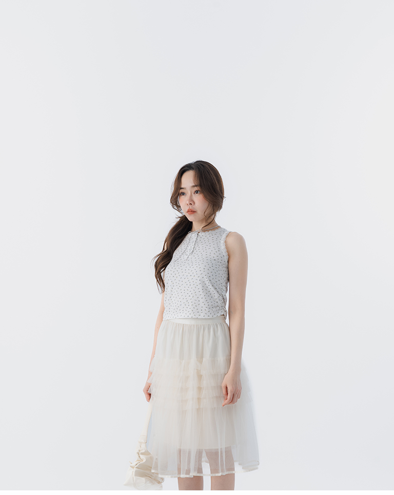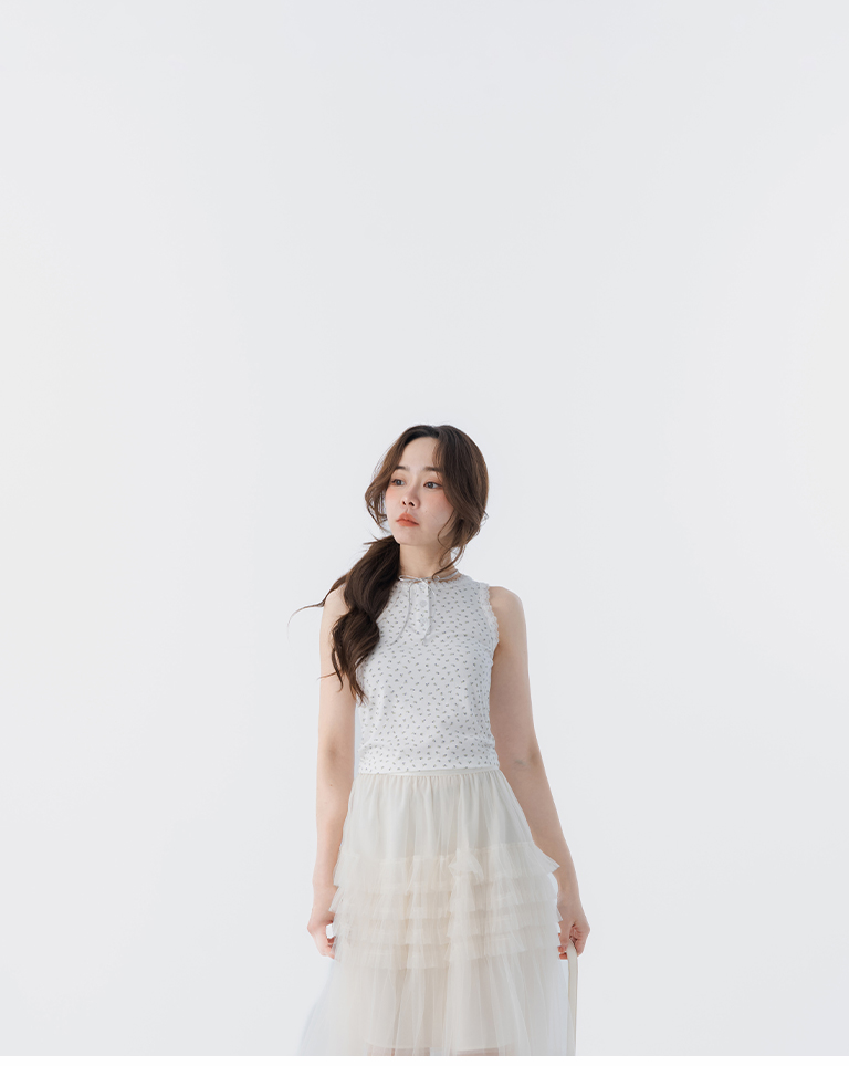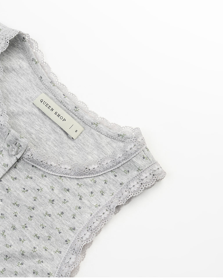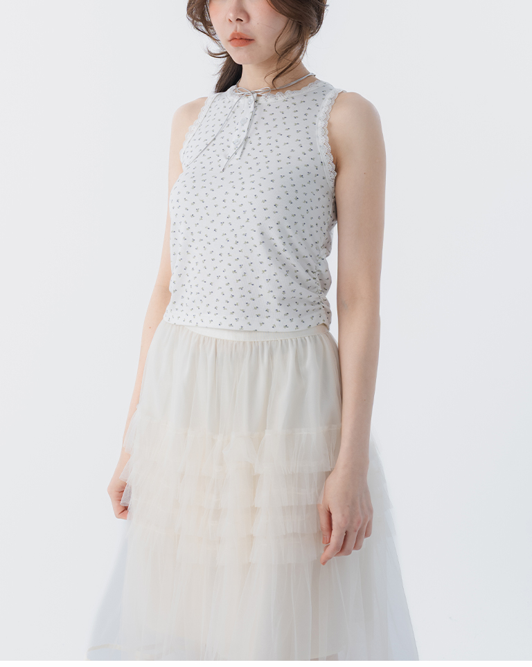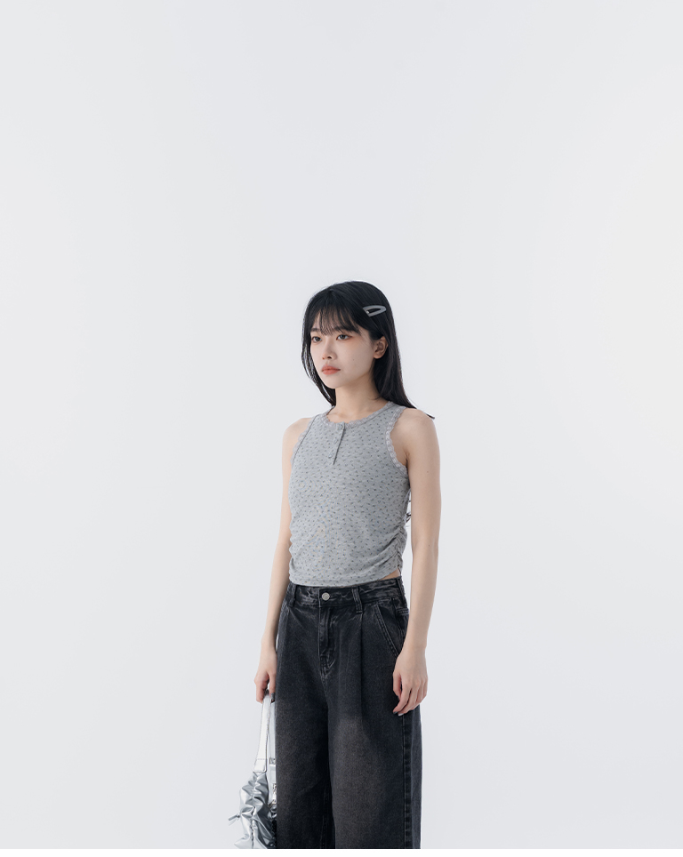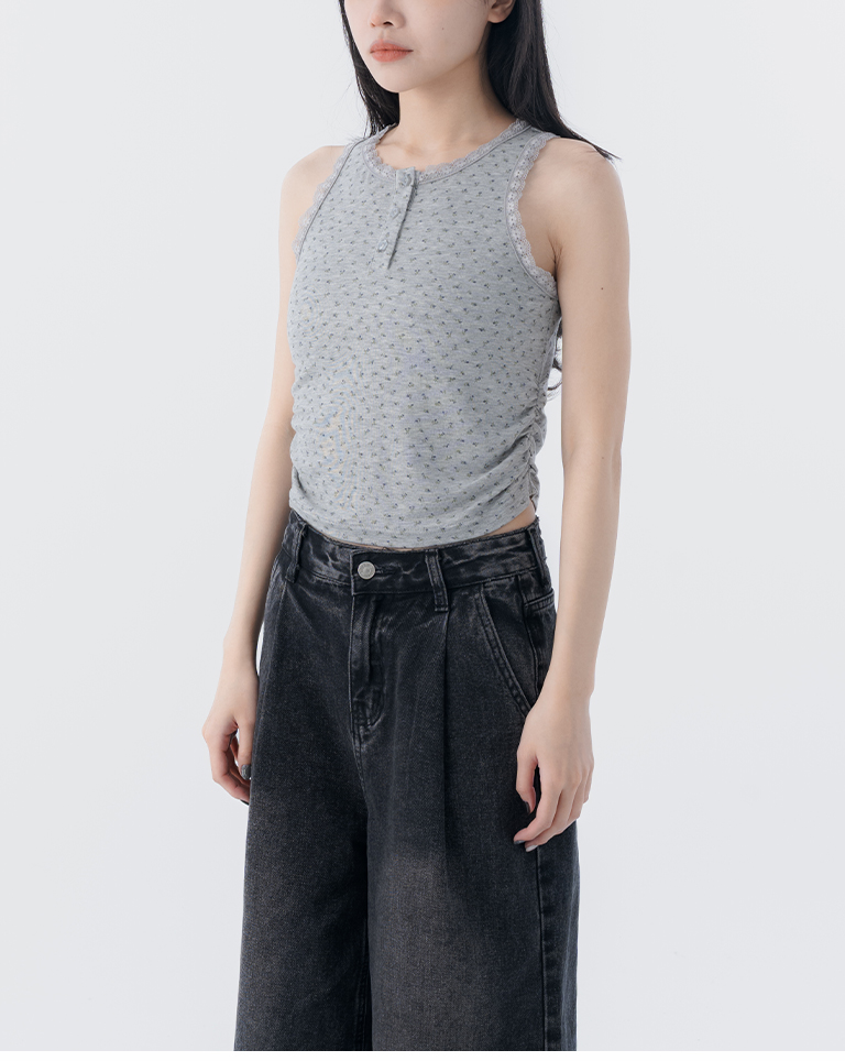 蕾絲碎花側抓皺設計背心