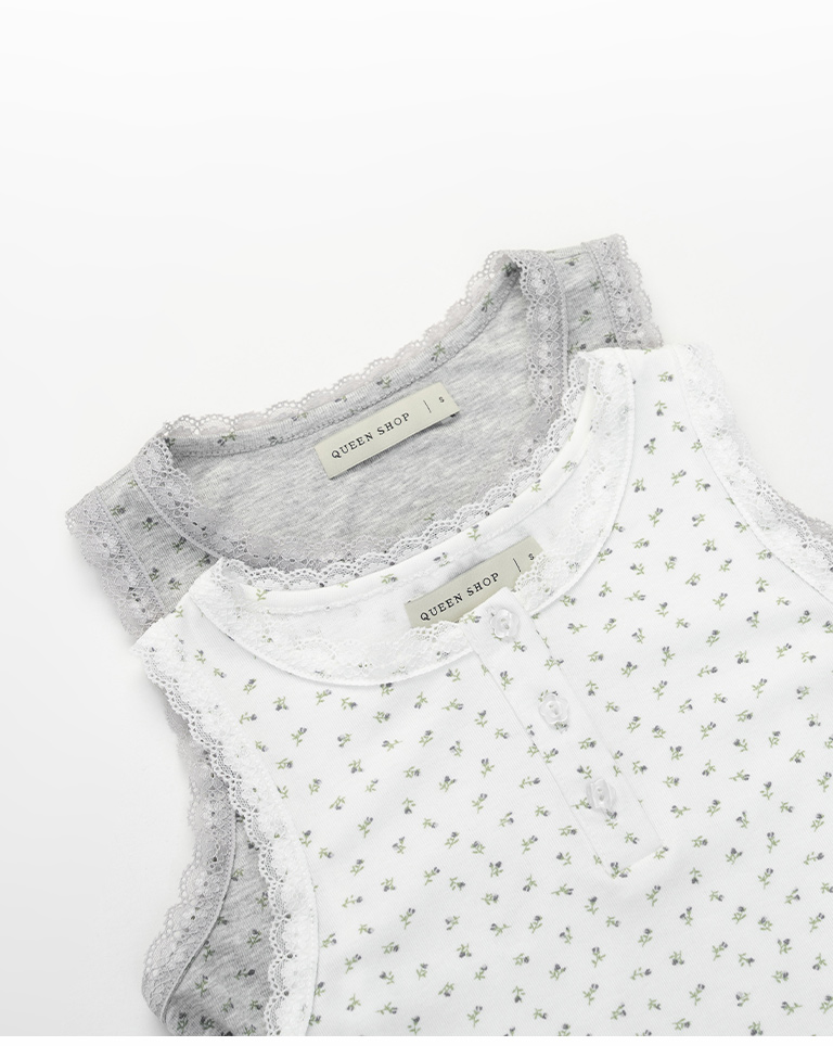 蕾絲碎花側抓皺設計背心 兩色售 S/M