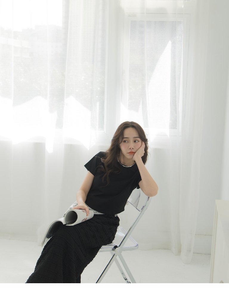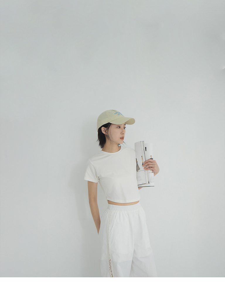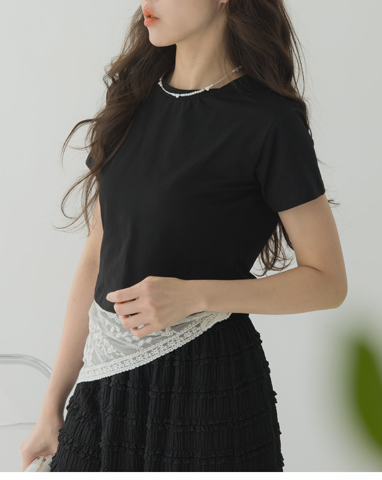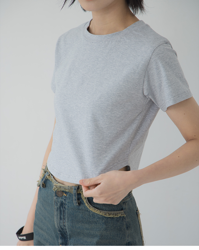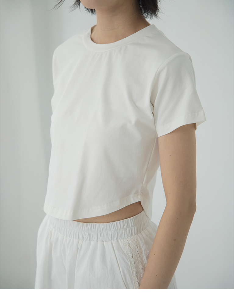 素面下擺弧度合身短版上衣