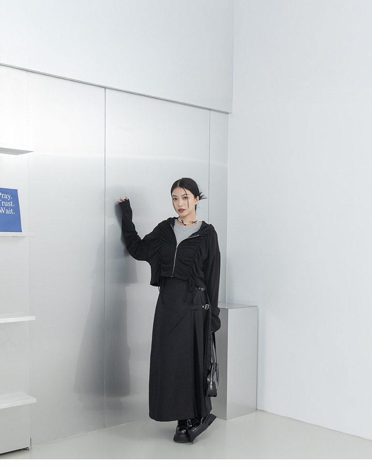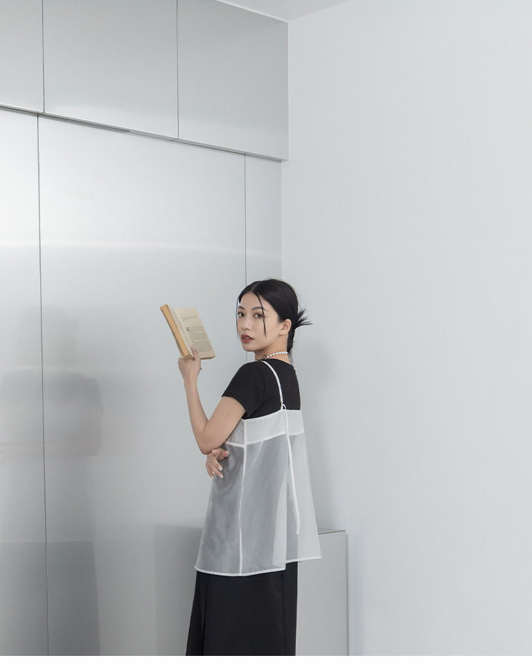 S~L身形實測!分尺寸皺皺木耳邊透膚高領長袖上衣
