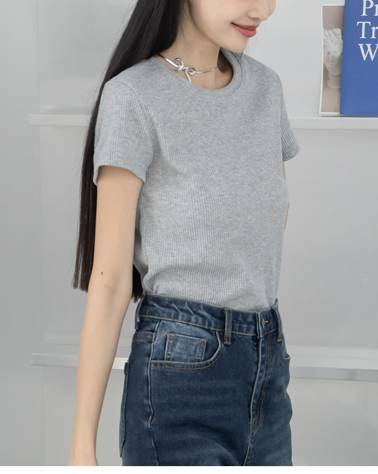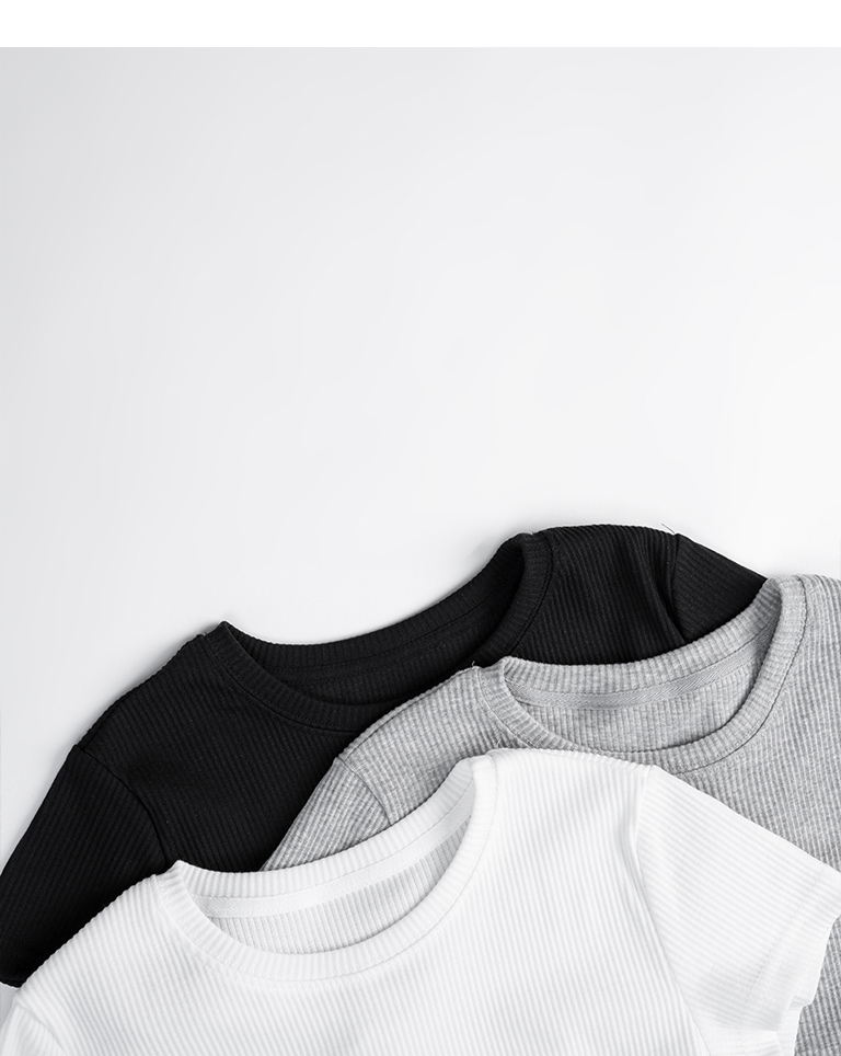 基本素面羅紋圓領純棉短袖上衣 三色售
