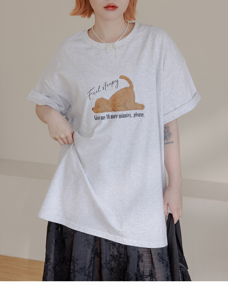 狗狗印圖寬版短袖上衣