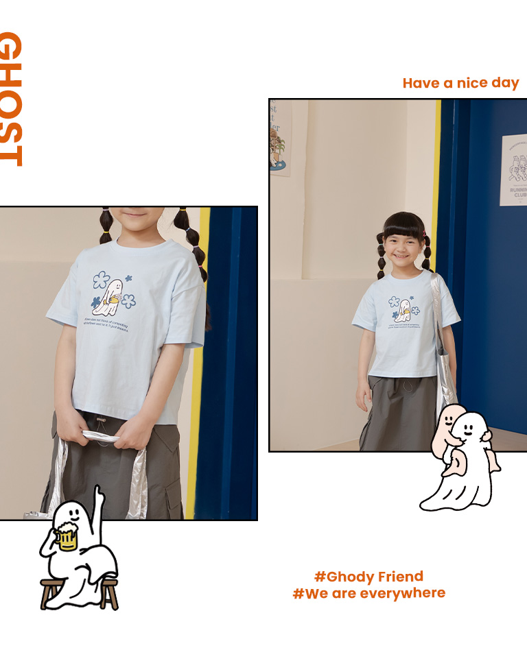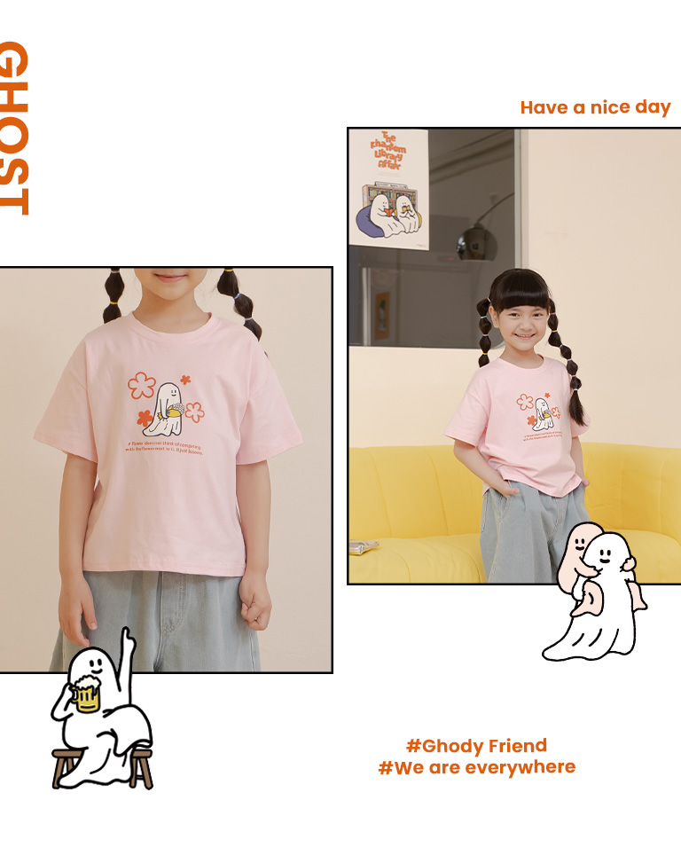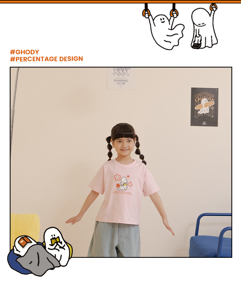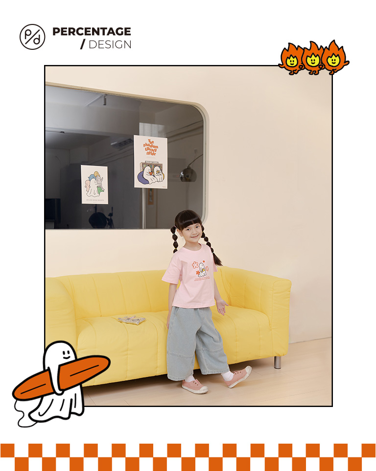 P/D幽靈 童裝 拿花幽靈印圖上衣