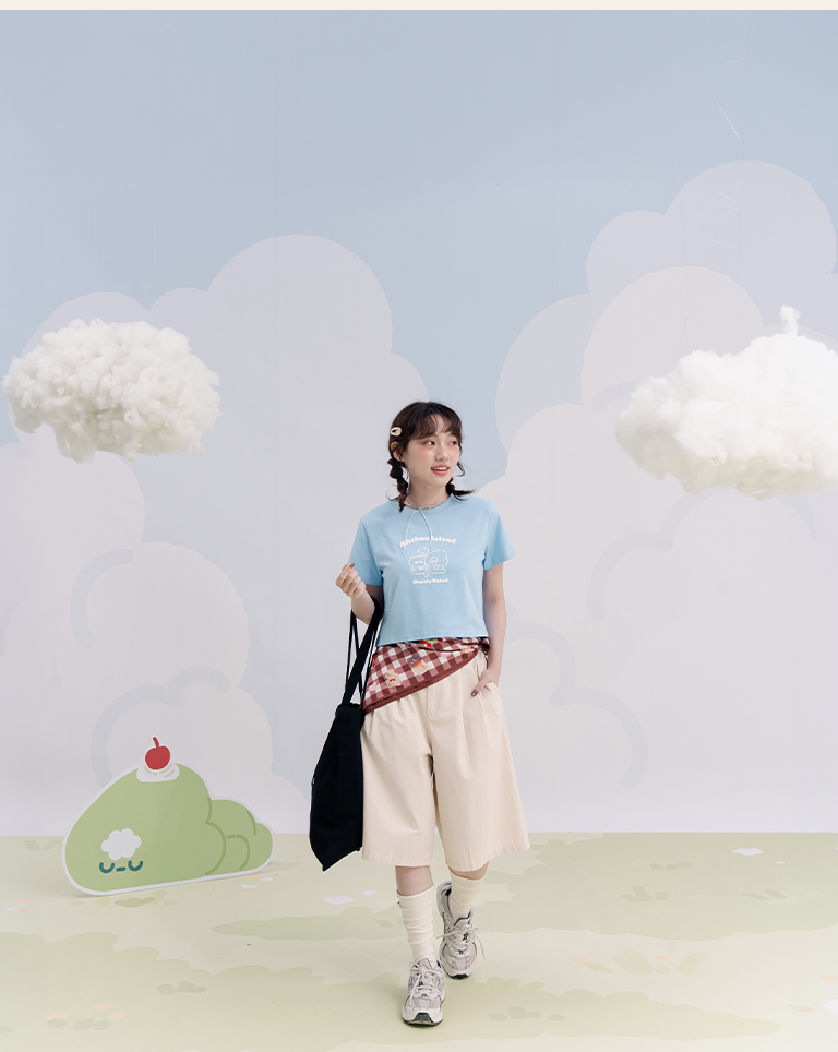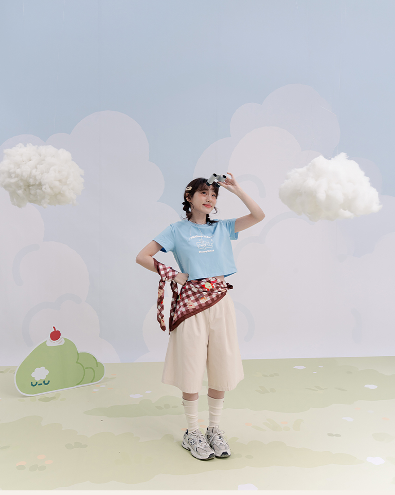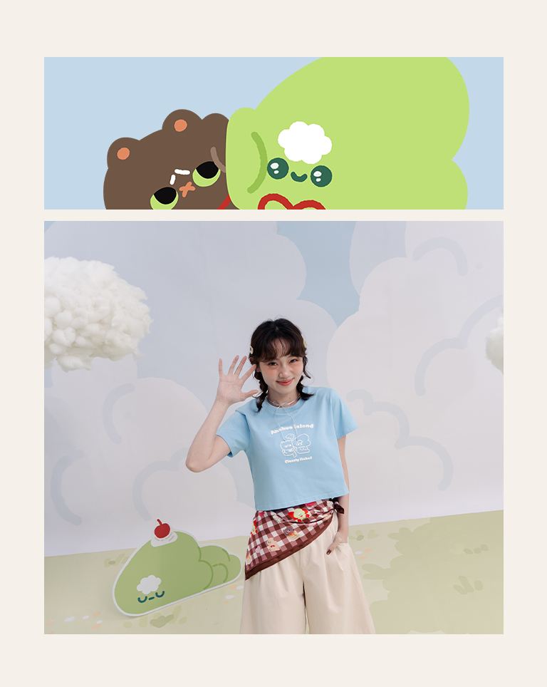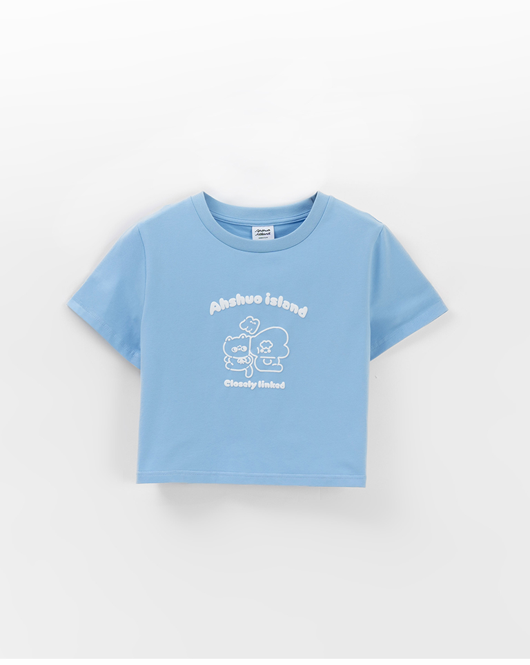 阿說不想說 發泡印圖涼感短版上衣 兩色售