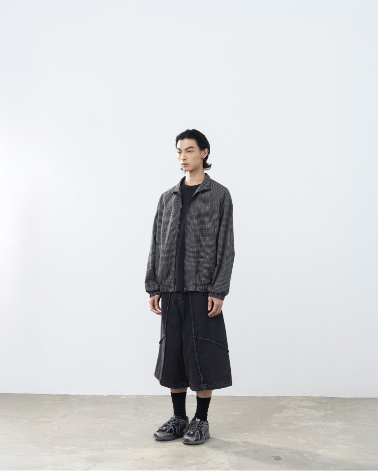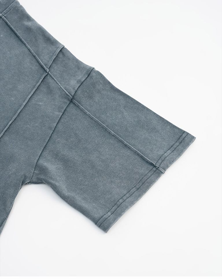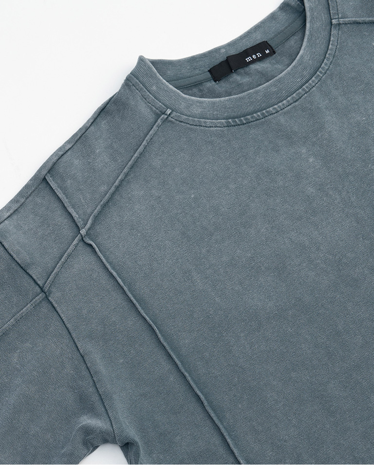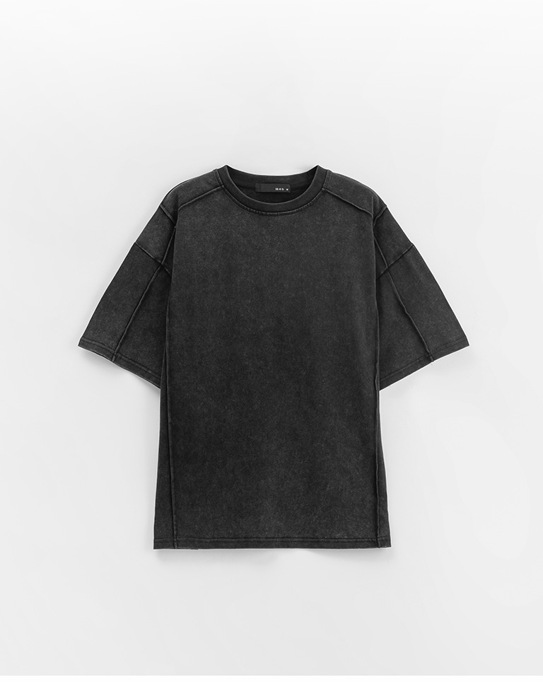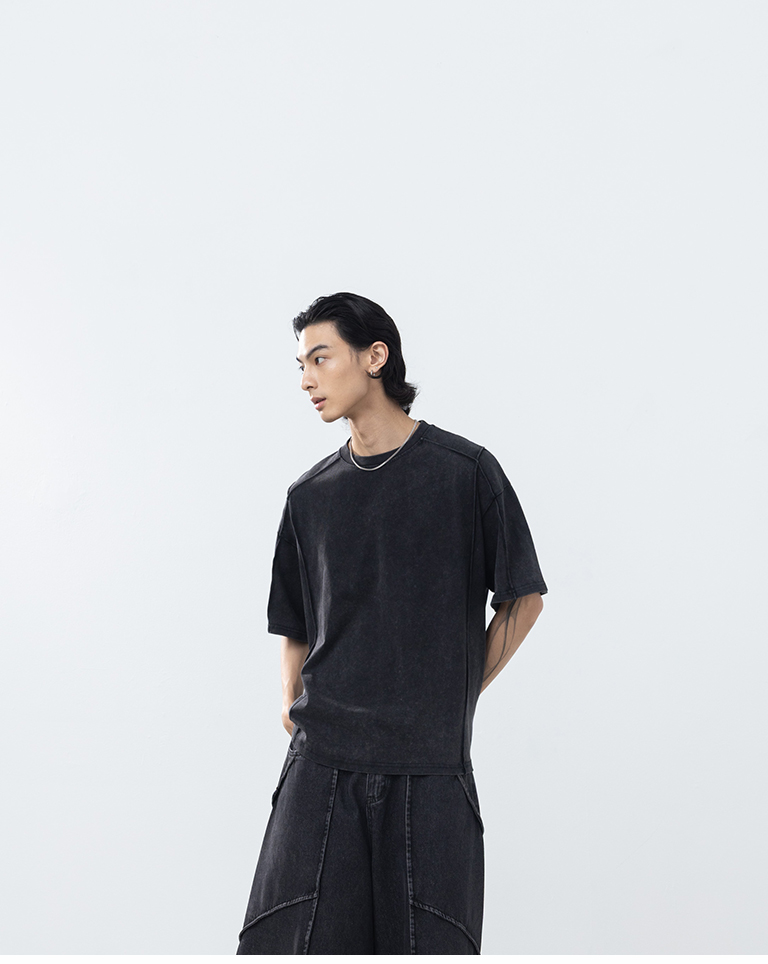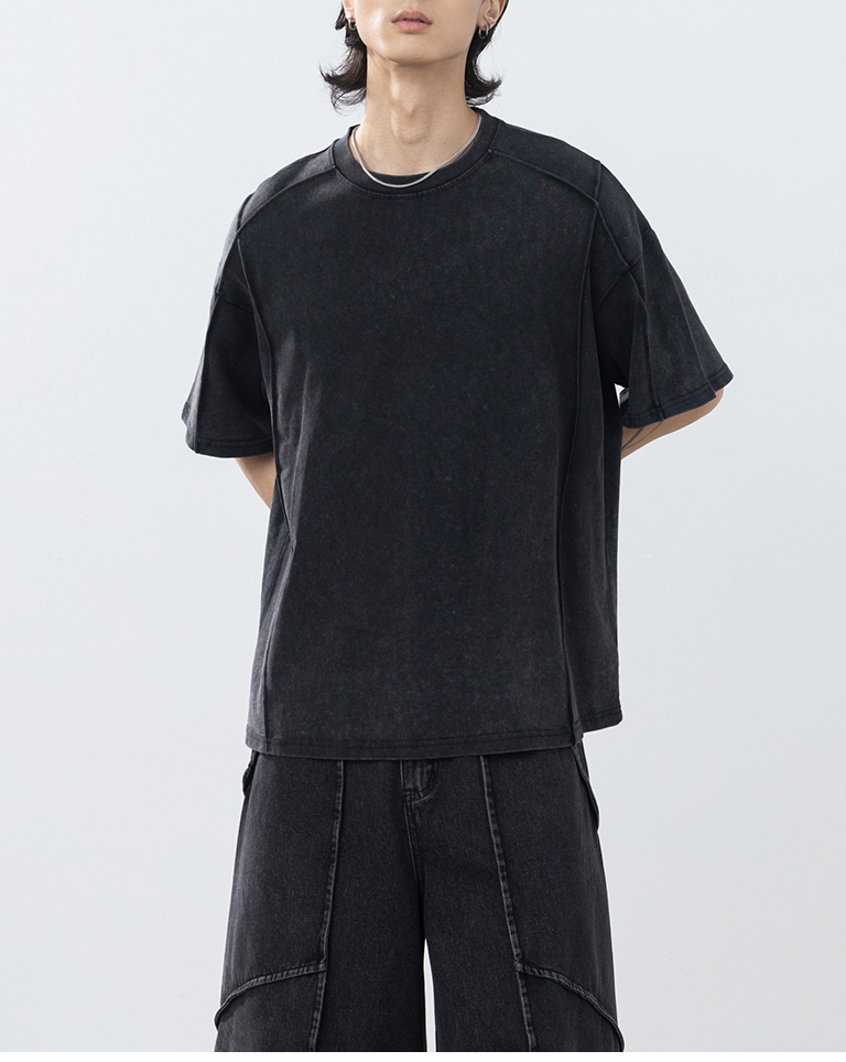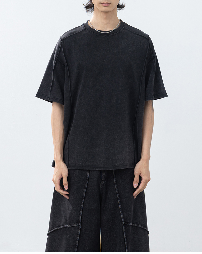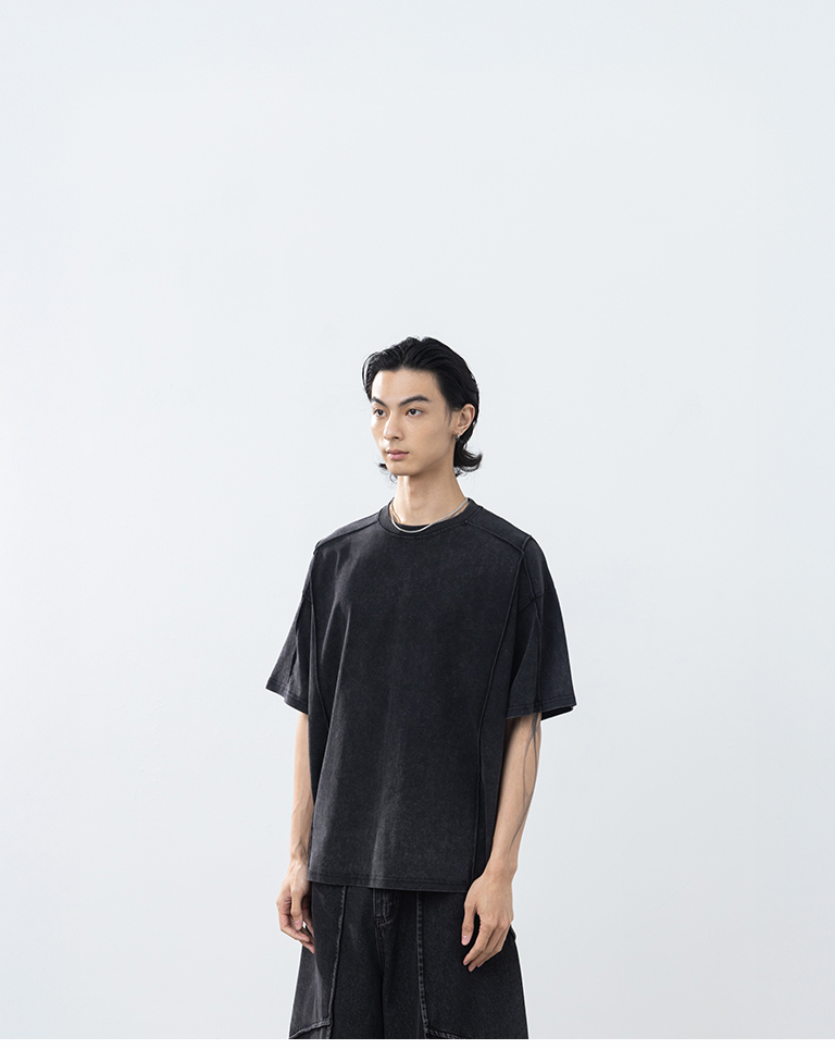 男裝 剪接洗水設計寬版短袖上衣-黑S/M/L/XL