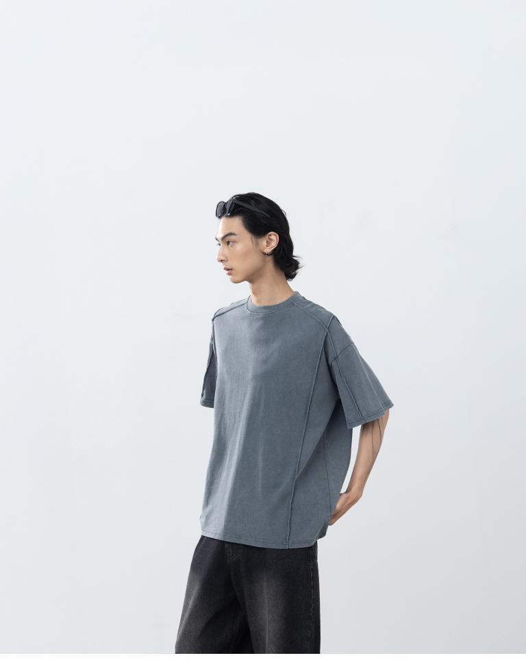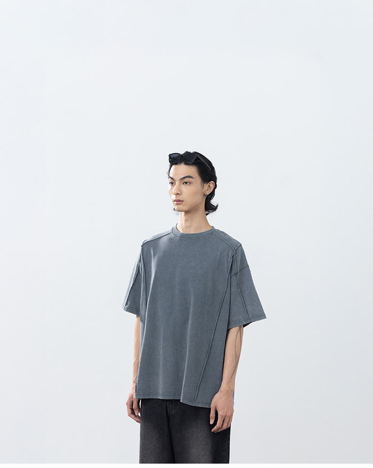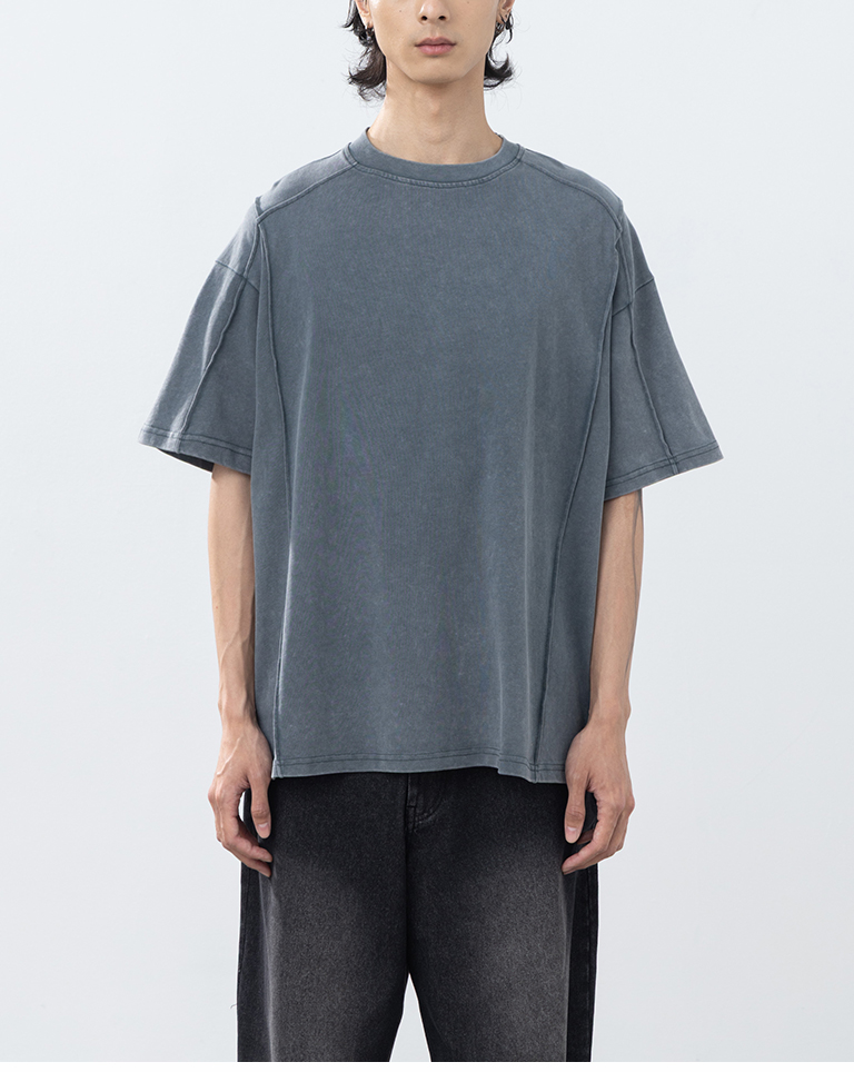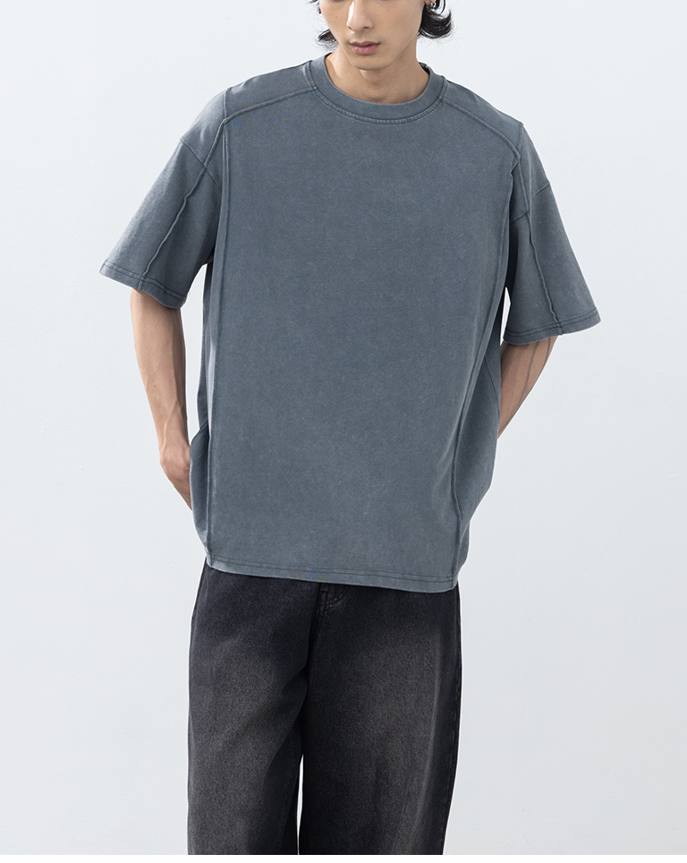 男裝 剪接洗水設計寬版短袖上衣