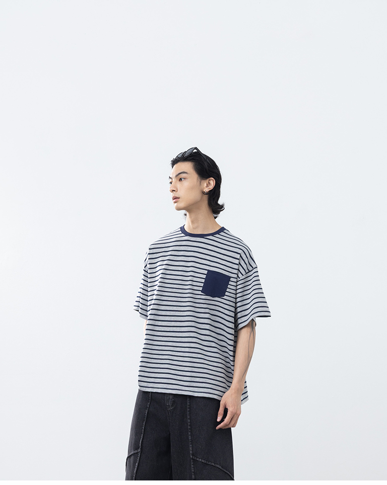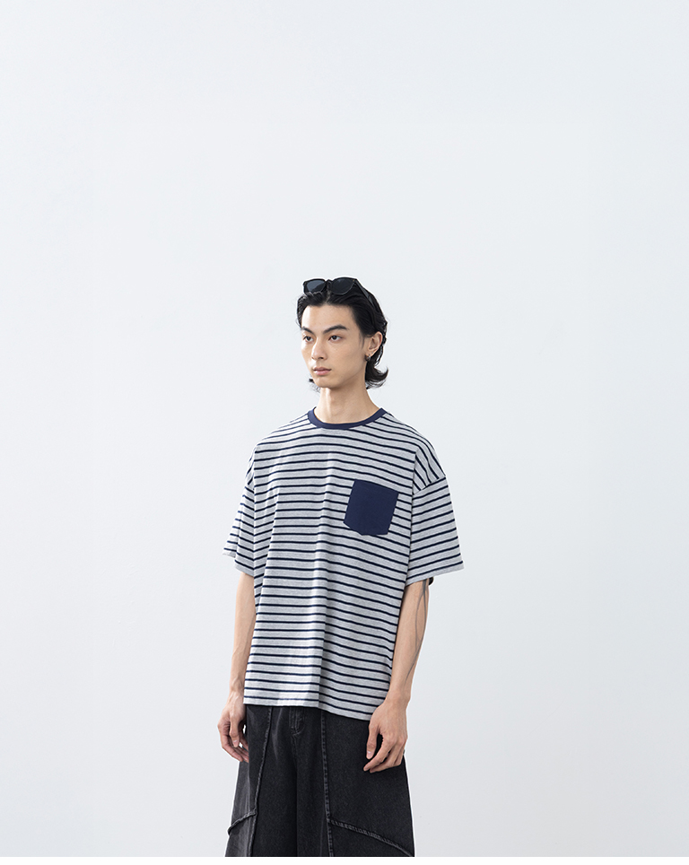 男裝 條紋配色口袋短袖上衣