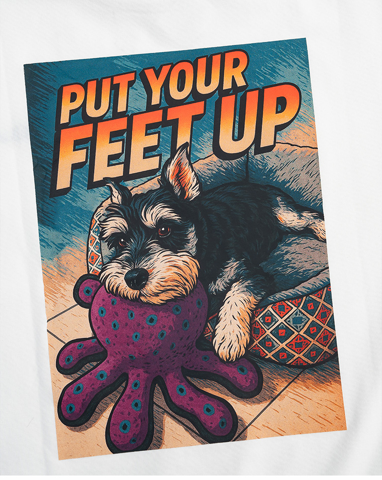 胸前睡覺小狗印圖 增添可愛亮點