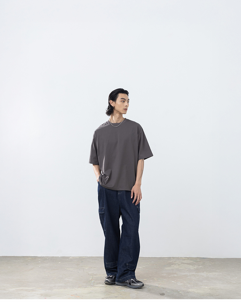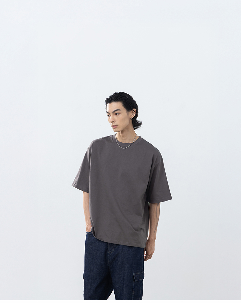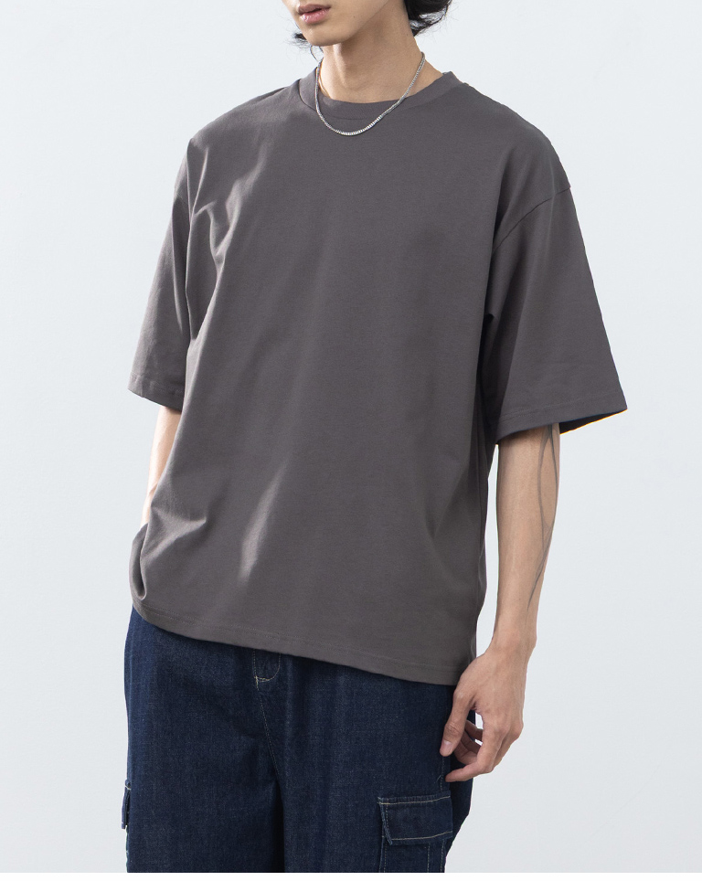 男裝 基本素面圓領短袖上衣-深灰S/M/L/XL