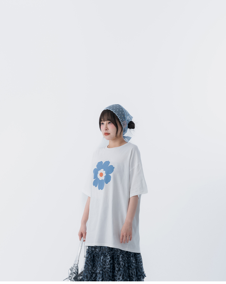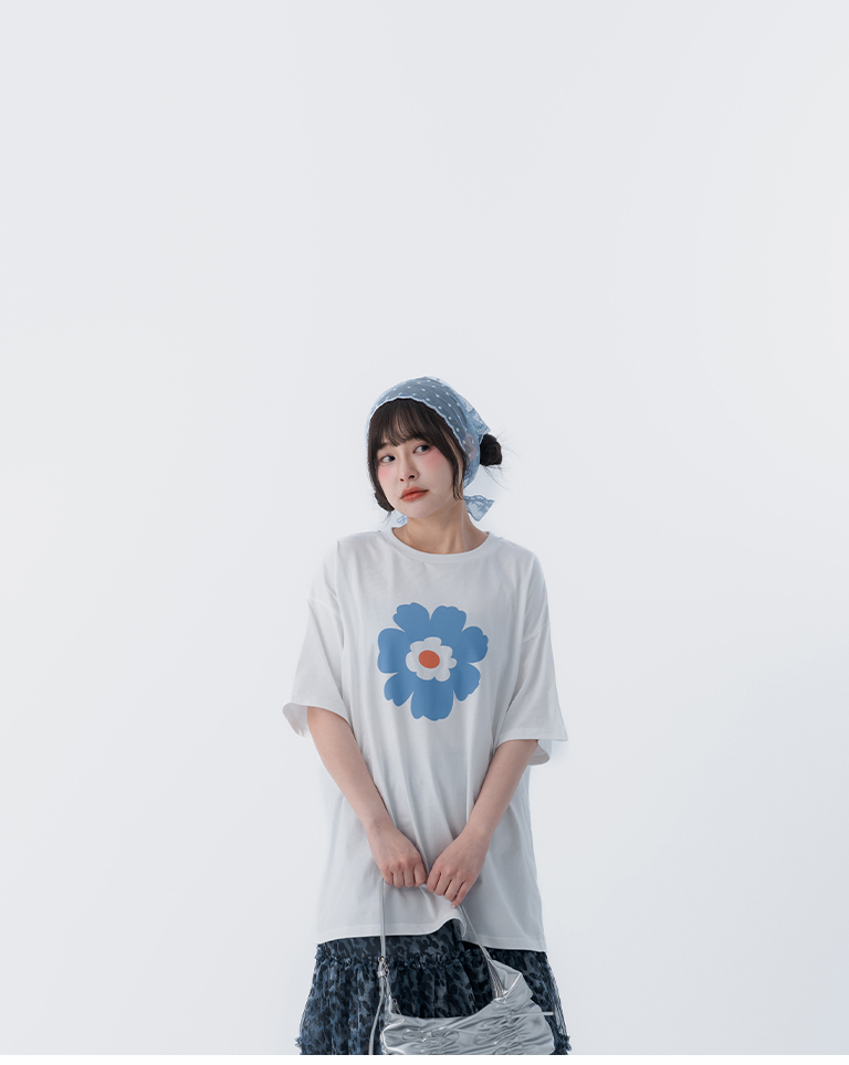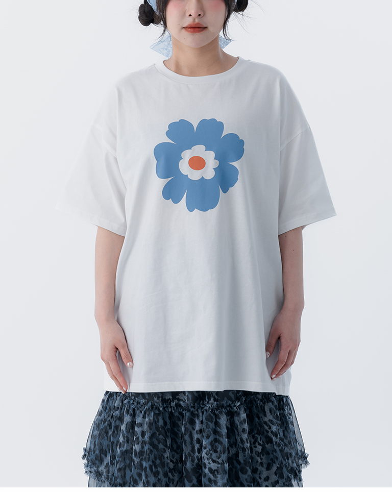 花花印圖寬版短袖上衣